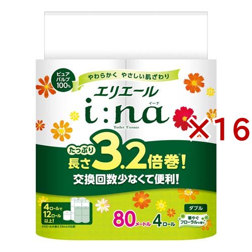 エリエール i:na(イーナ) トイレット ダブル 3.2倍巻(4ロール入×16セット)[トイレットペーパー ダブル]