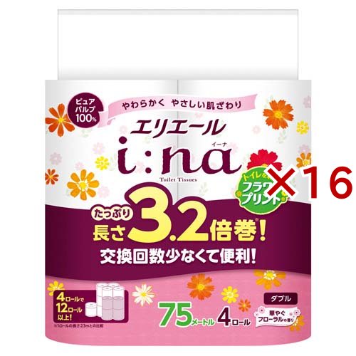 エリエール i:na(イーナ) トイレット ダブル 3.2倍巻 プリント(4ロール入×16セット)[トイレットペーパー ダブル]