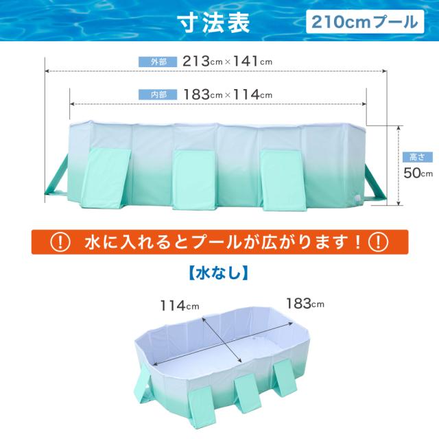 プール 折りたたみ 空気入れ不要 ビニールプール 大型プール ファミリープール 家庭用プール 子供用プール 2.1m 210サイズ 庭プール 簡易プール 準備簡単 コンパクト収納 丈夫 おすすめ おもちゃ 水遊び