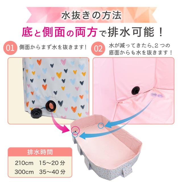 面倒な空気注入がないので、お子様を待たせることなく遊べます。片付けも水を抜いて畳むだけ!