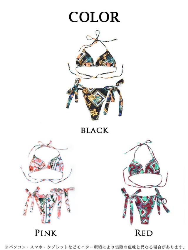 ☆リゾートリーフ柄が可愛い定番レディース水着は、紐パンがキュートなギャル水着。