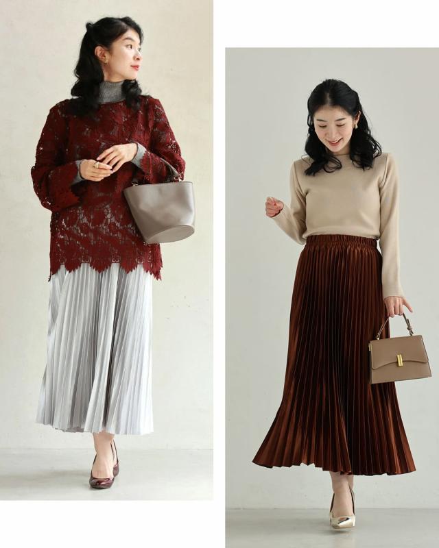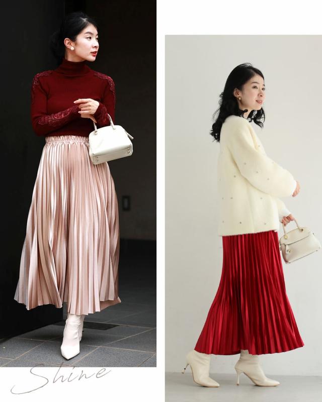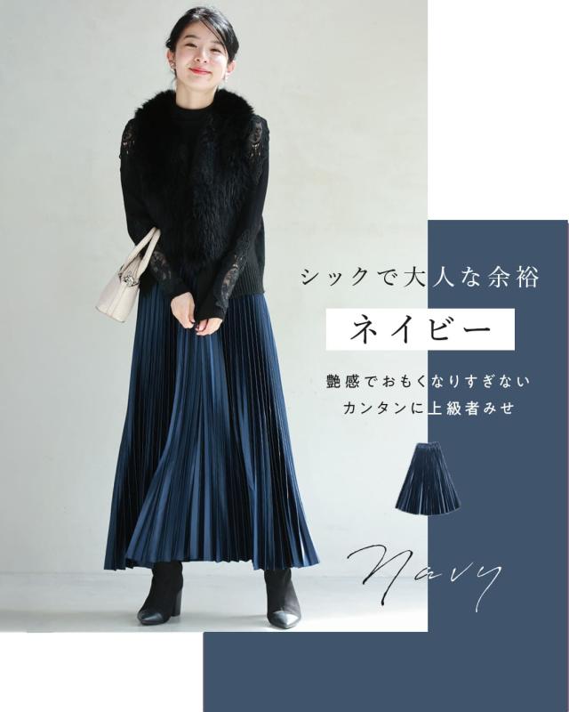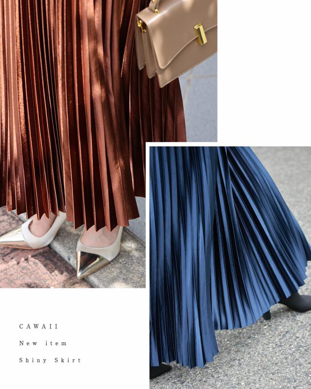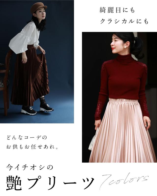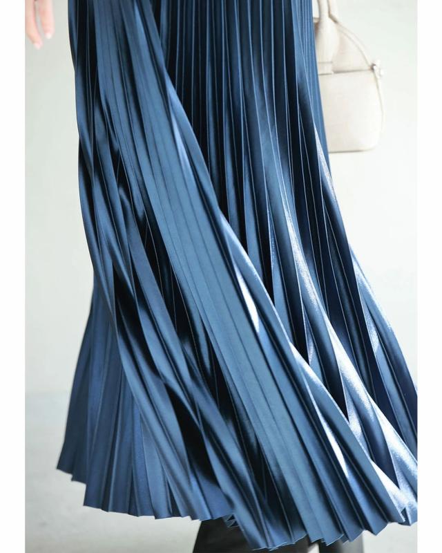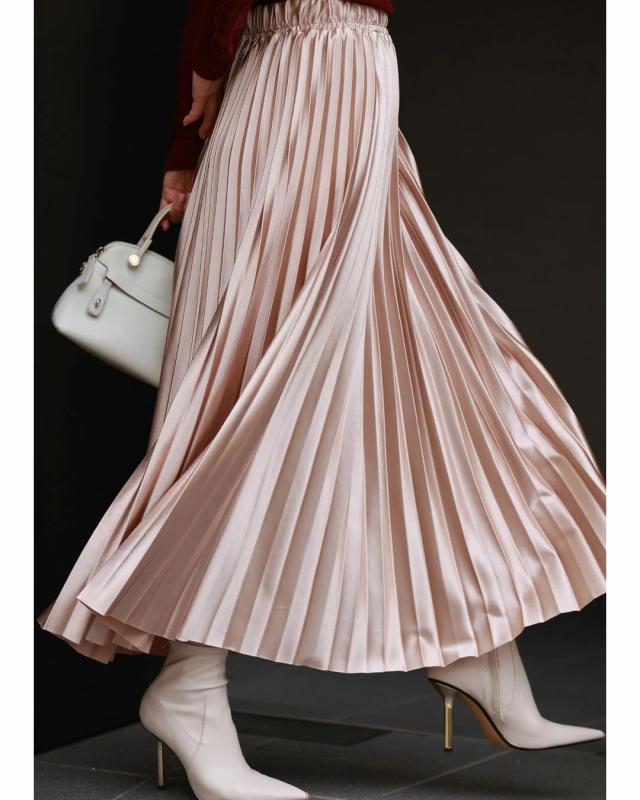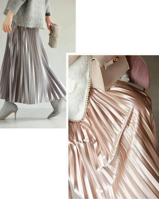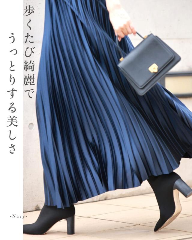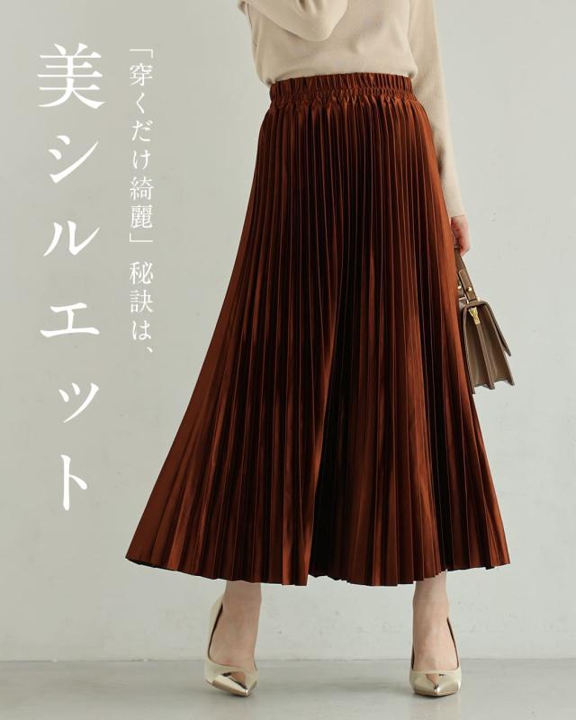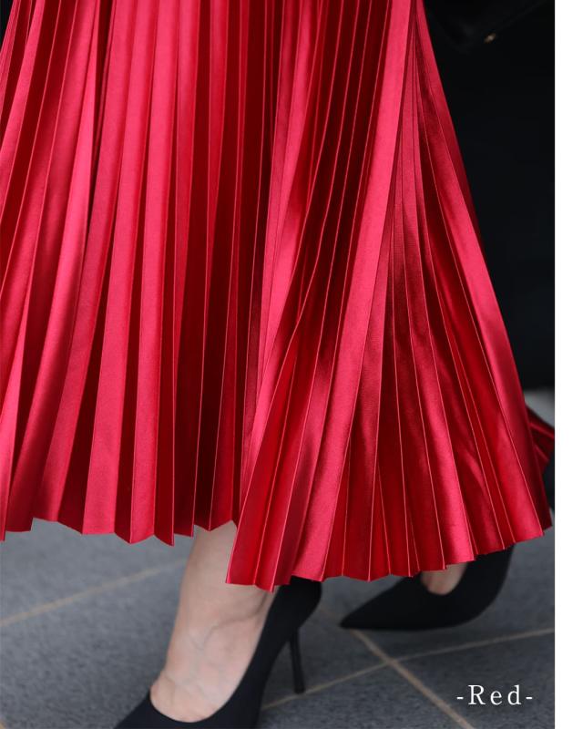 再入荷9月22日 落ち感 美しい 光沢 プリーツ スカート cawaii wkj00011 S~3L対応 夏服 夏物 春服 春物 総ゴム ミドル シルバー ゴールド 光沢 エレガント キレイめ 上品 女性らしい レディース ファッション ミセス 30代 40代 50代 母の日