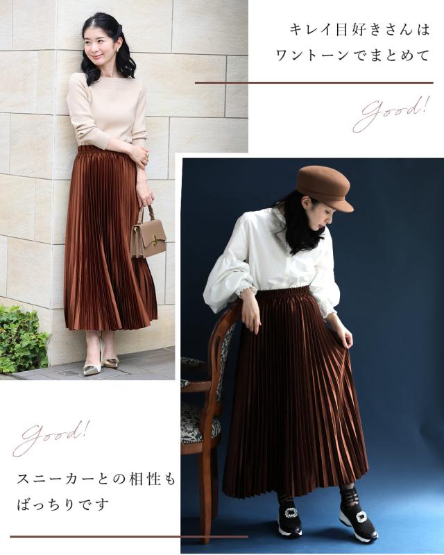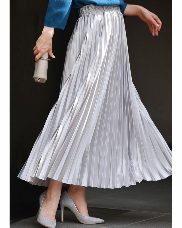 wkj00011 おしゃれと褒められる プリーツスカート 新作 新着 再入荷 CAWAII FRENCHPAVE フレンチパヴェ エレガント ベーシック カジュアル 可愛い かわいい カワイイ おしゃれ オシャレ お洒落 個性 個性的 定番 ベーシック 大人かわいい 大人可愛い 上品 女性らしい デザイン スタンダード ナチュラル きれいめ キレイめ シンプル フェミニン レディース レディースファッション 大人 ママ ミセス 30代 40代 50代 60代 スカート 総ゴム プリーツ ミドル ミディアム シルバー ゴールド 光沢 ウエストフリー S M L 2L LL XL 3L LLL XXL フリーサイズ フリー 小さめ 小さめサイズ 小さい 小さいサイズ 低身長 痩せ ほっそり 小柄 細身 標準サイズ 大きめシルエット 大きい 大きめ ビッグシルエット ぽっちゃり F サイズ自由 日常着 普段着 日常使い おでかけ 春 夏 夏服 夏物 春服 春物