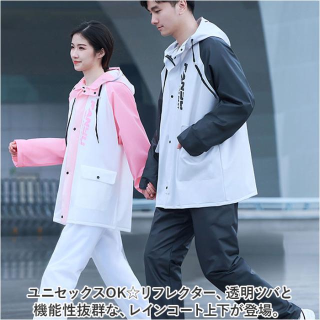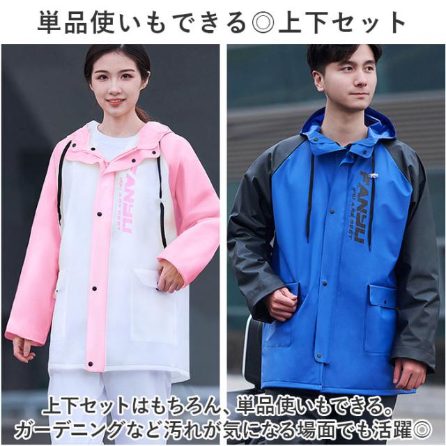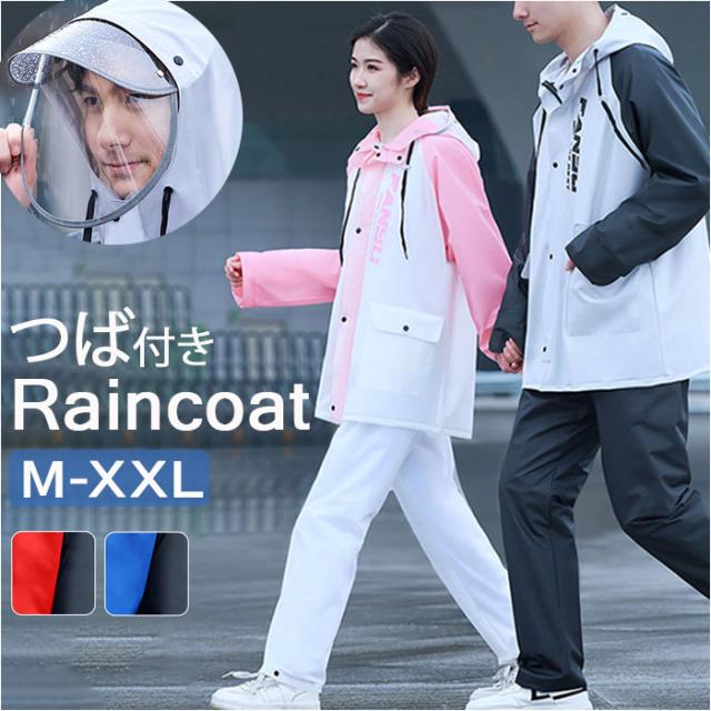レインコート 上下 通販 レインウェア カッパ 雨具 フード付き 上着 ズボン 前つば レイングッズ 男女兼用 梅雨対策 雨の日 レディース メンズ 無地 カジュアル リュック対応