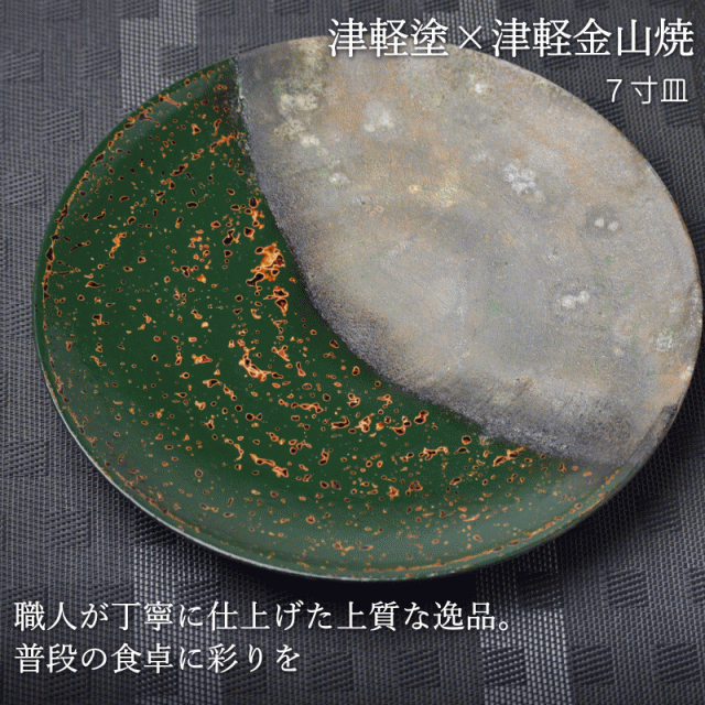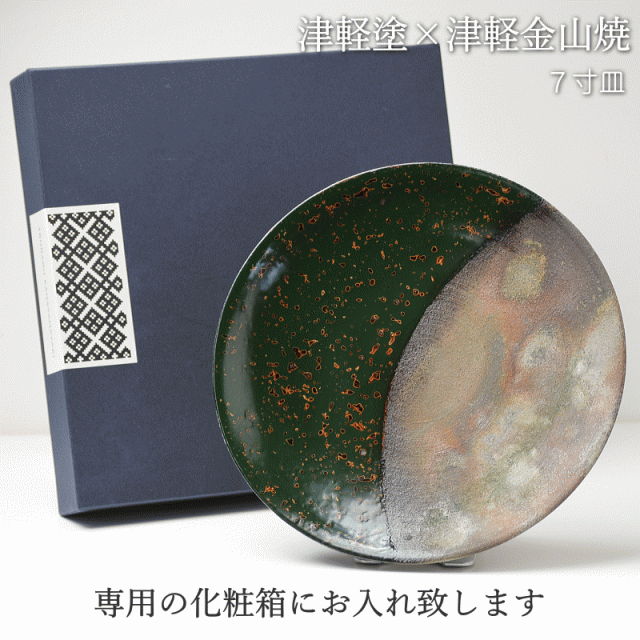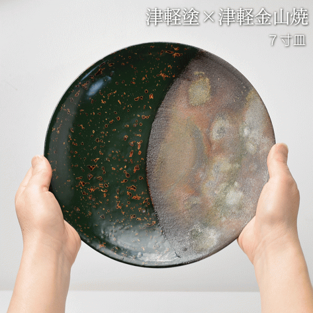 7寸皿 津軽塗 × 津軽金山焼【青上げ】高さ2.5cm-幅21.0cm-339g 津軽塗 皿 送料無料 津軽塗り 和モダン 日本製 漆 漆器 皿 おしゃれ 陶器 和食器 プレゼント