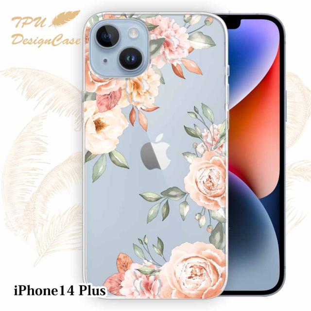 【14時までの注文で当日発送】 iPhone14 Plus ソフトケース TPU クリアケース 透明 アイフォン14プラス ケース おしゃれ カラフル かわいい 花 花柄 ビンテージフローラル