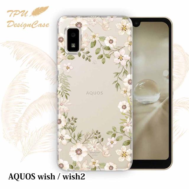 【TPUケース】 AQUOS wish2 / wish SH-51C / SHG06 / A104SH / SH-M20 ソフトケース TPU クリアケース 透明 アクオス ウィッシュ3 ケース おしゃれ カラフル かわいい 花 花柄 ホワイトフラワー