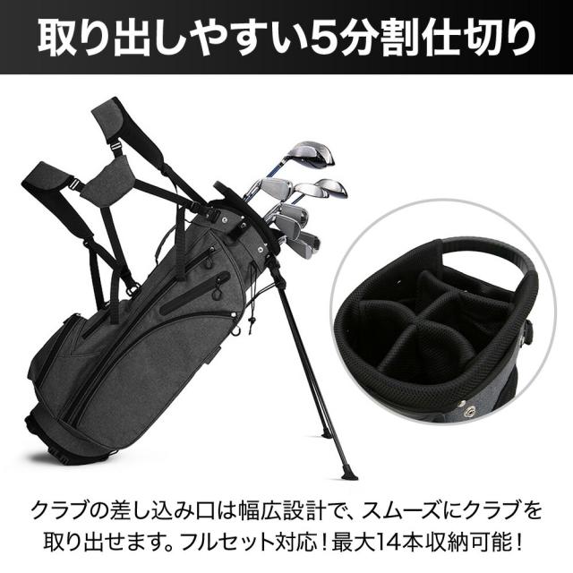ゴルフバッグ メンズ レディース 軽量 ヘッドカバー カバー 練習用 スタンド ゴルフ バッグ スタンド式 グレー クラブケース ケース ショルダー フルセット 14本収納可能 男女兼用 簡単 持ち運び 移動 ハンドル付き
