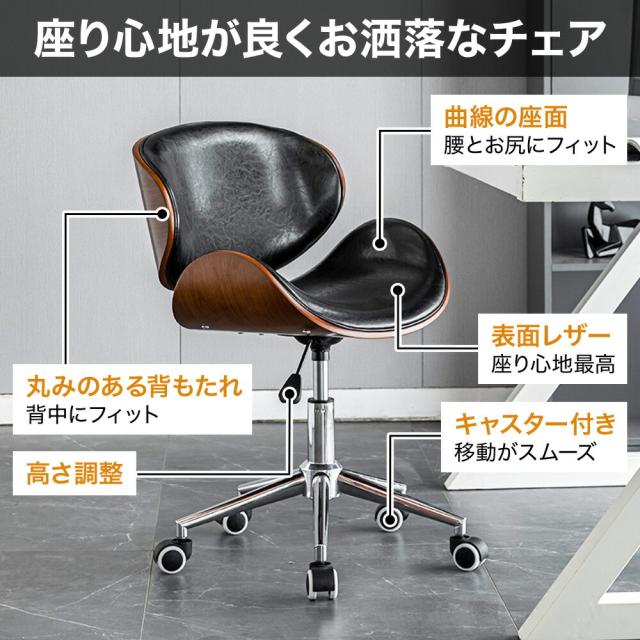 ダイニングチェア 回転 昇降 回転キャスター付き キャスター付き 椅子 おしゃれ デスクチェア レザー 木目調 ガス圧 高さ調整 調節 360度 イス いす チェア バランスチェア パソコン オフィス デザイン インテリア