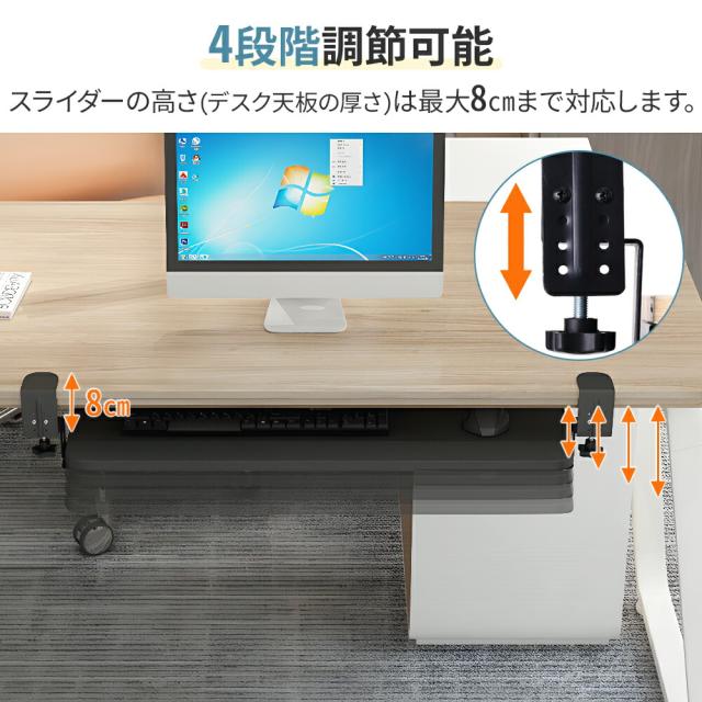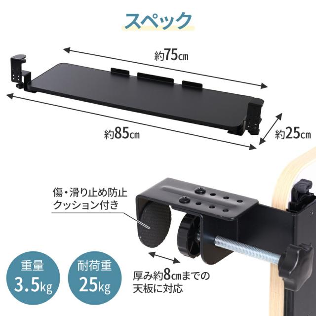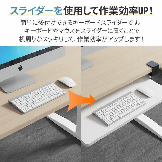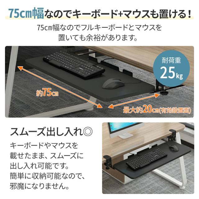 キーボードスライダー 収納 pcデスク 幅75cm デスク設置 クランプ 後付け キーボード マウス ラック キーボード台 キーボードテーブル フルキーボード キーボードトレイ デスク 拡張 机上ラック 机上台 デスク収納