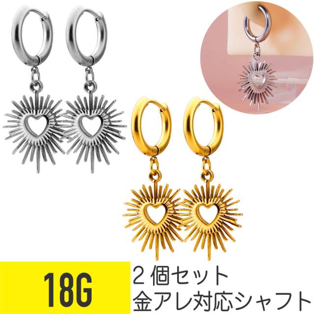 2個セット エスニック ハート ワンタッチ リング フープ ピアス 18G サージカルステンレス ヘリックス 軟骨ピアス ボディピアス 着脱簡単