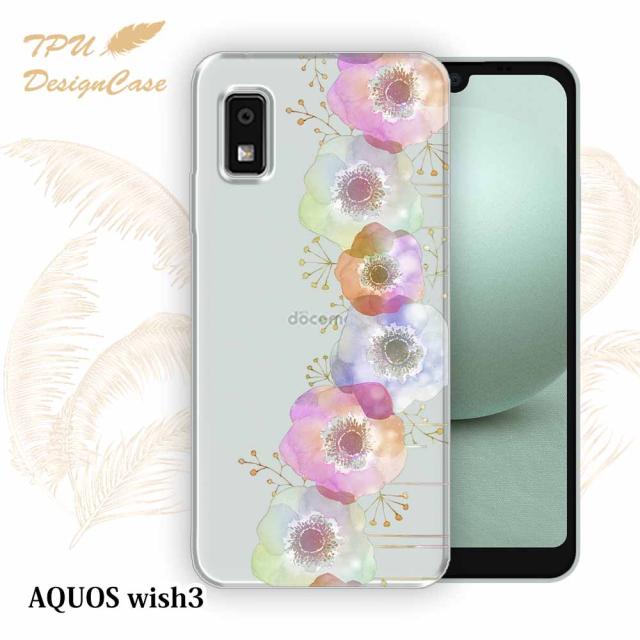 【TPUケース】 AQUOS wish3 SH-53D / A302SH ソフトケース TPU クリアケース 透明 アクオス ウィッシュ3 ケース おしゃれ カラフル かわいい 花 花柄 フラワーシンフォニー