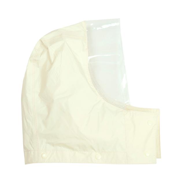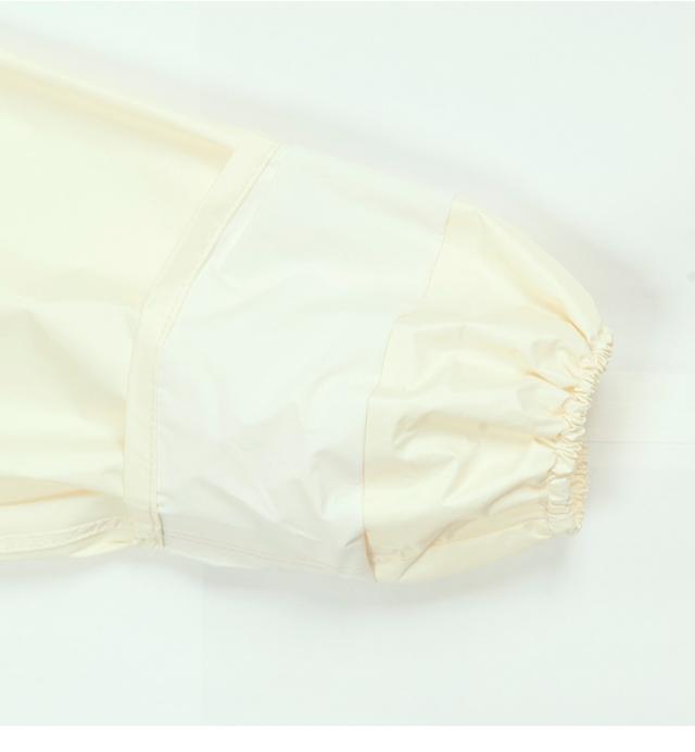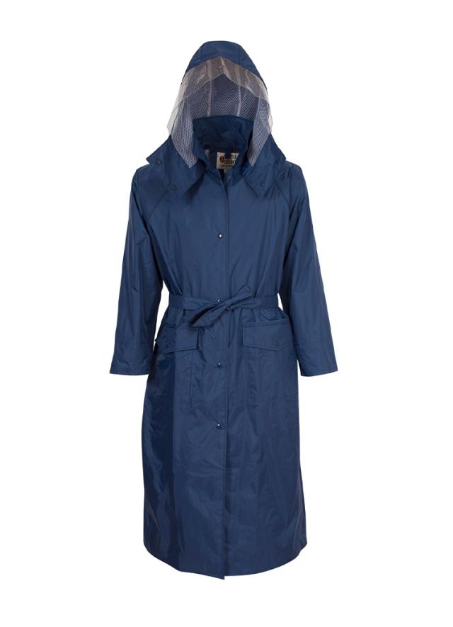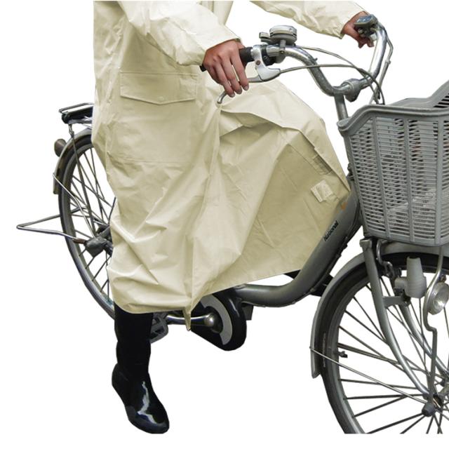 女性の通勤や通学でも違和感のないシルエット。フロントのアンダーガード(三角マチ)が裾開きによる雨の浸入を防ぎます。