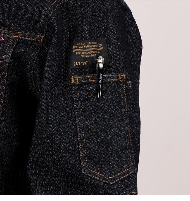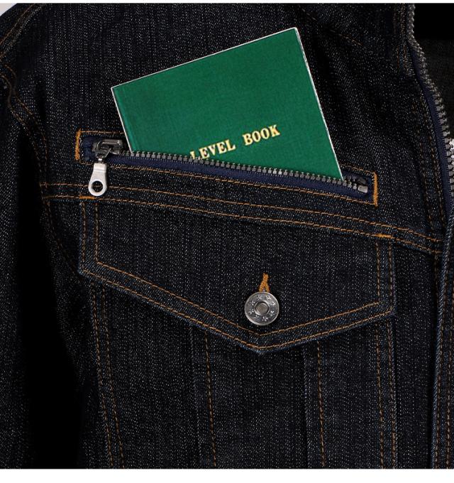 動きやすい伸縮性のある素材を使用したワークデニムブルゾン。右胸のファスナーポケットには、測量野帳が収納可能。左胸・左袖にはペン挿しポケットを装備。
