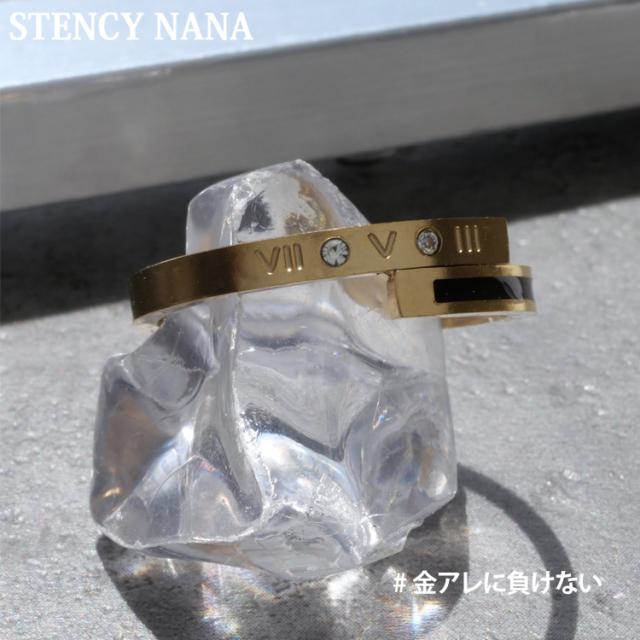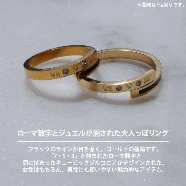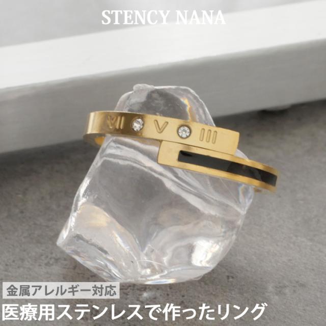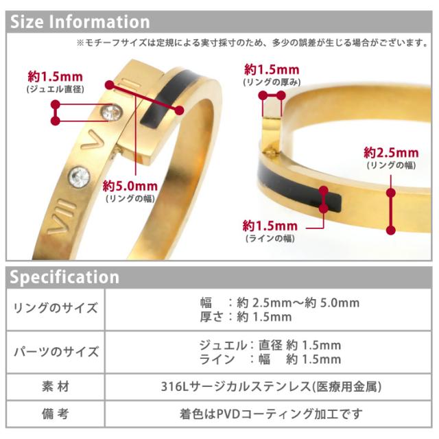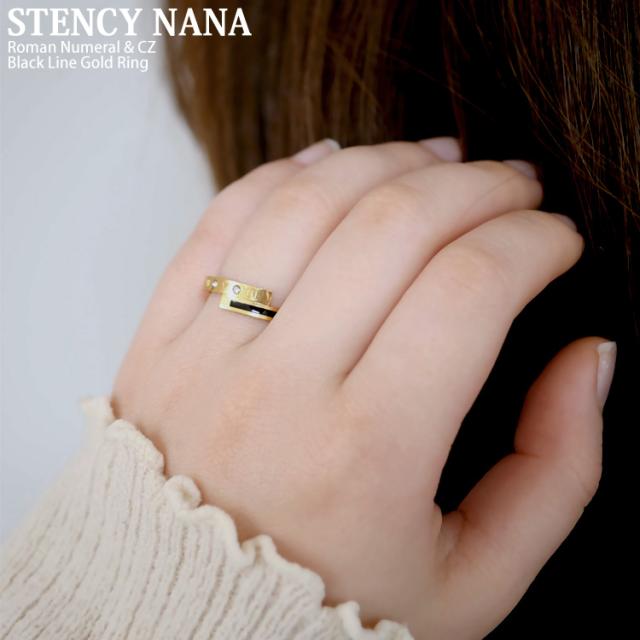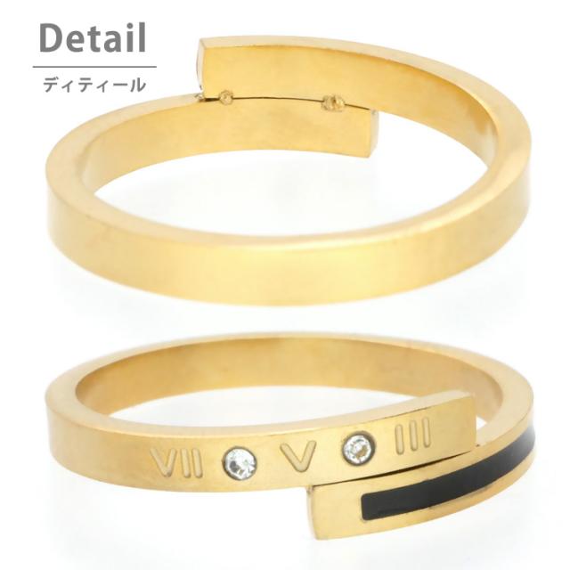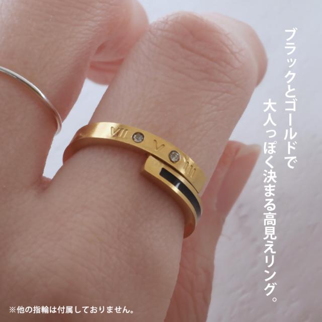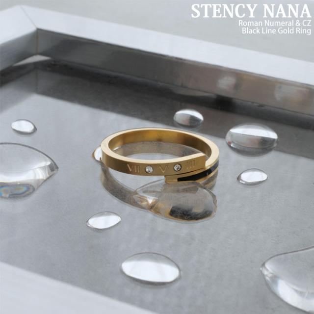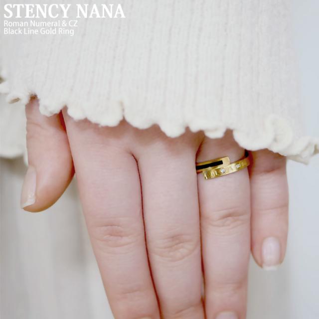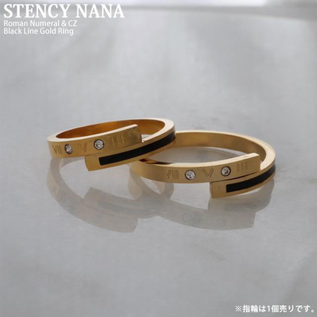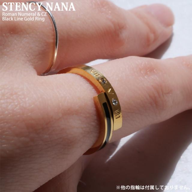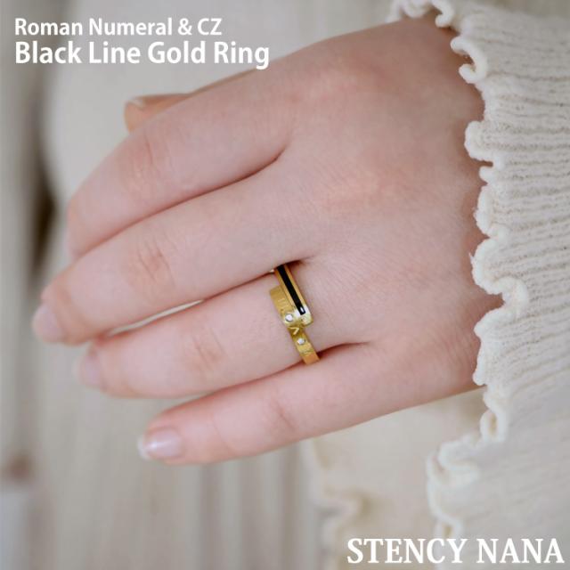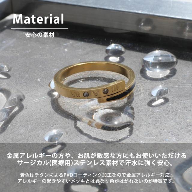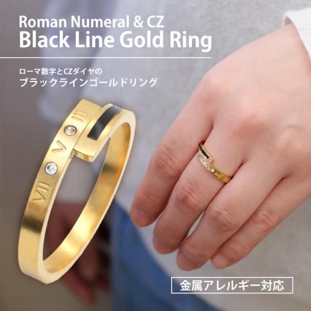 ステンレスリング ブラックラインゴールドリング ローマ数字 ジルコニア 金属アレルギー 316L ニッケルフリー