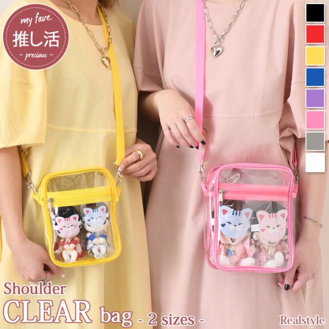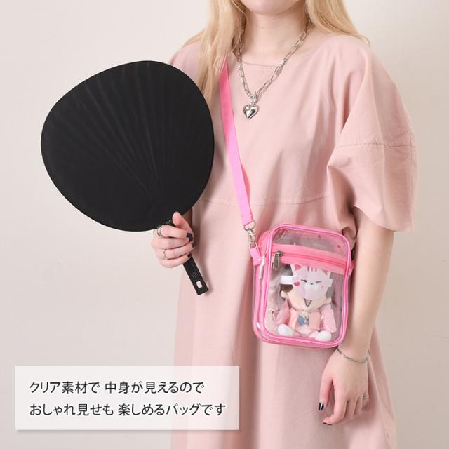 新作 ショルダーバッグ クリア 透明 スクエア ビニール 推し活 推しカラー コンサート ライブ ぬいバッグ ポケット付き 推し色 オタ活