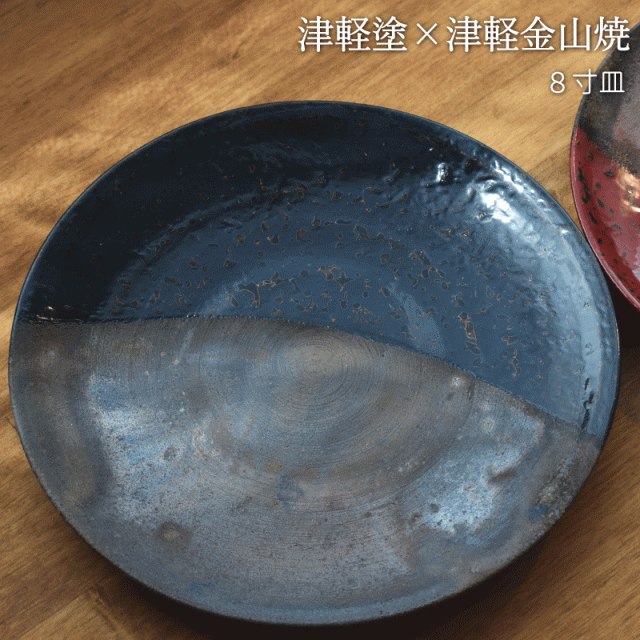 8寸皿 津軽塗 × 津軽金山焼【紺上げ】