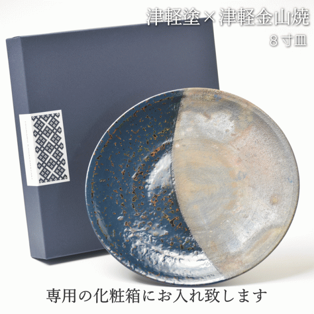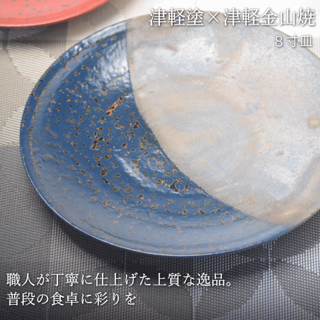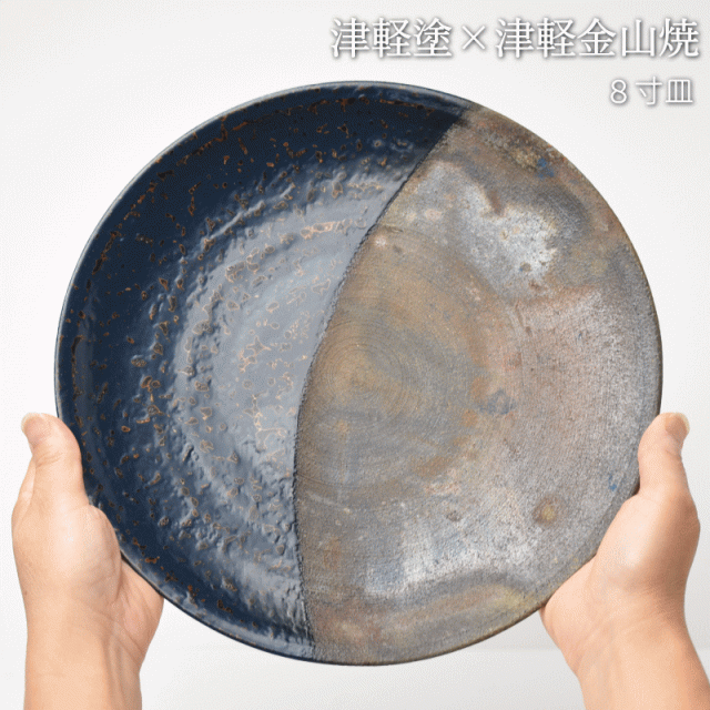 8寸皿 津軽塗 × 津軽金山焼【紺上げ】高さ2cm-幅25cm-513g 津軽塗 皿 送料無料 津軽塗り 和モダン 日本製 漆 漆器 皿 おしゃれ 陶器 和食器 プレゼント
