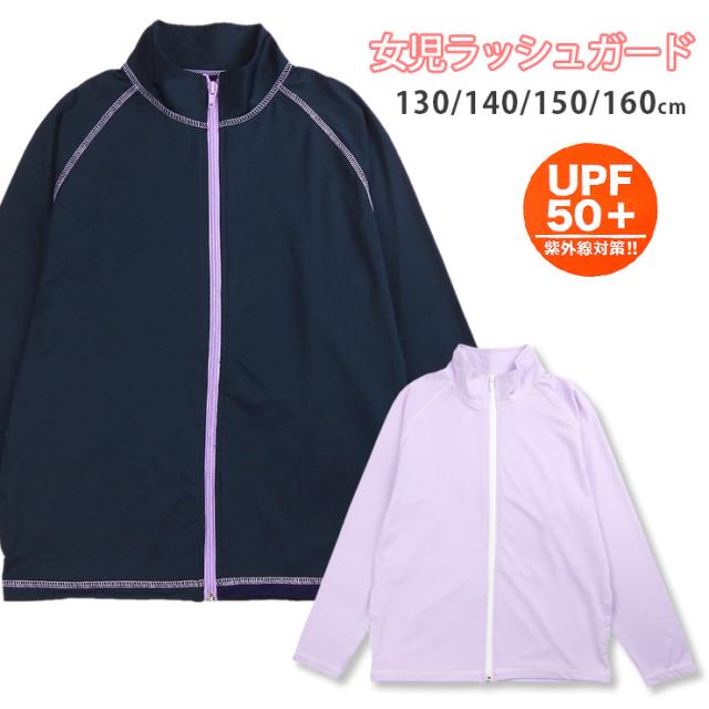 【メール便送料無料】長袖ラッシュガード水着 キッズ・ジュニア 130 140 150 160 スクール水着 子供 女の子 ネイビー ラベンダー No.sw3478