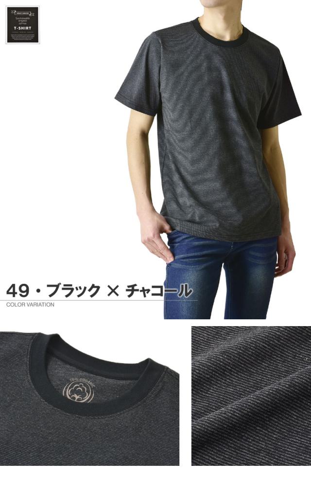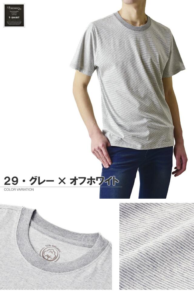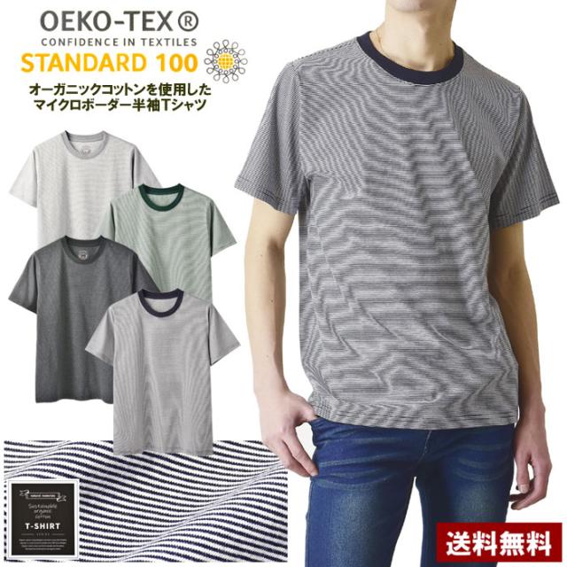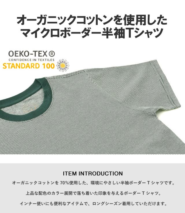 Tシャツ 半袖 ボーダー 綿 100% オーガニック コットン マイクロボーダー ミニボーダー【E1U】【パケ2】