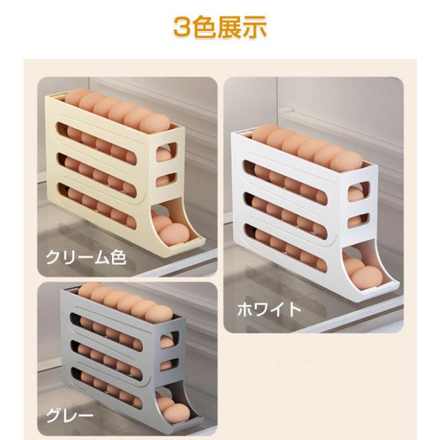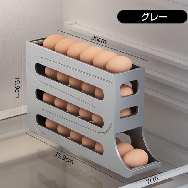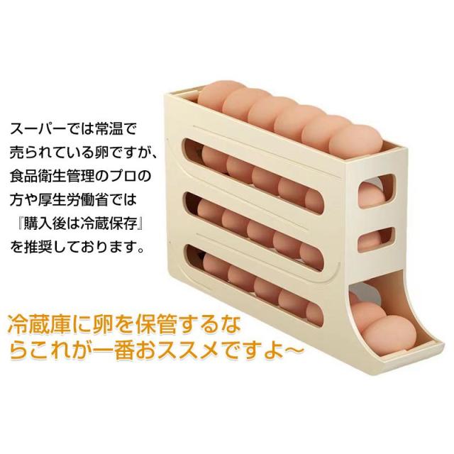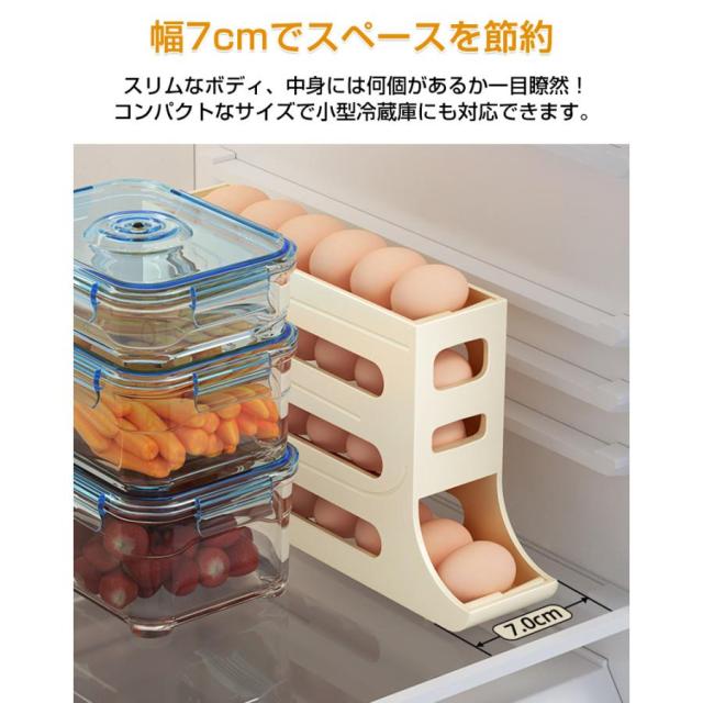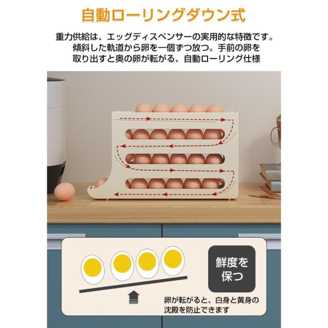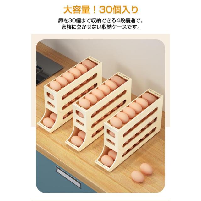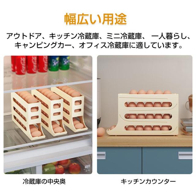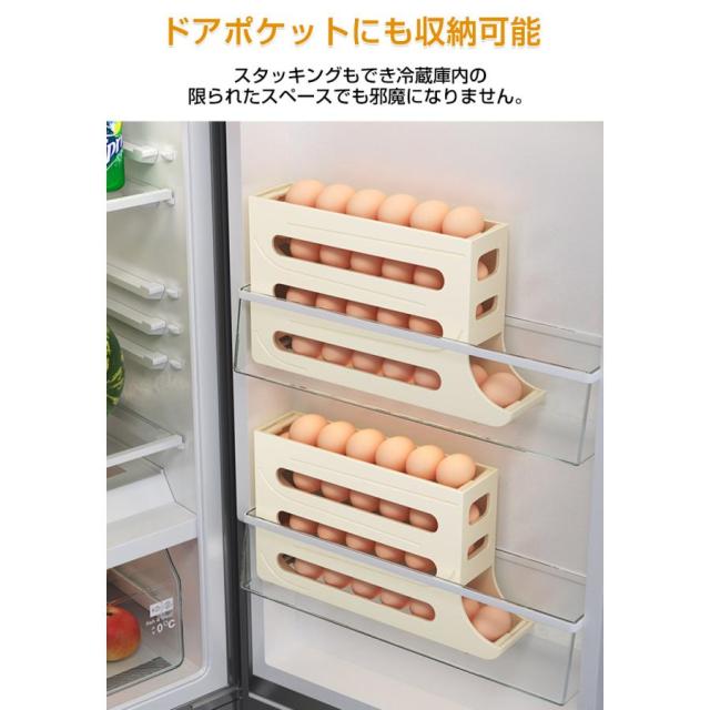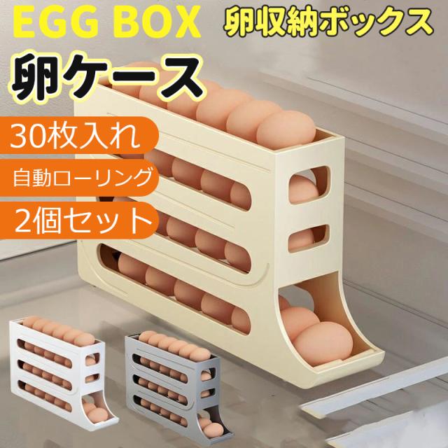 2個セット 卵ケース 卵入れ 卵置き 冷蔵庫用 たまご収納 30枚入れ 自動ローリング 玉子キャリー 卵ホルダー 卵収納ボックス 簡単設置 自動落ち