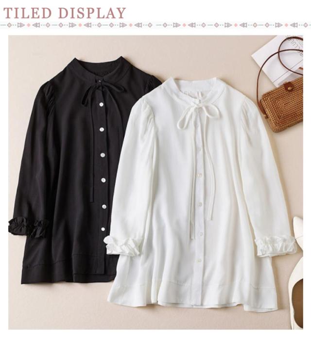 | ・フリル袖 リボンシャツ ・袖のフリルと襟元のリボンでさりげなく可愛いさをプラス。 ・ジャケットとも合わせやすく、オフィスコーデなどにも映えるアイテムです。 | |