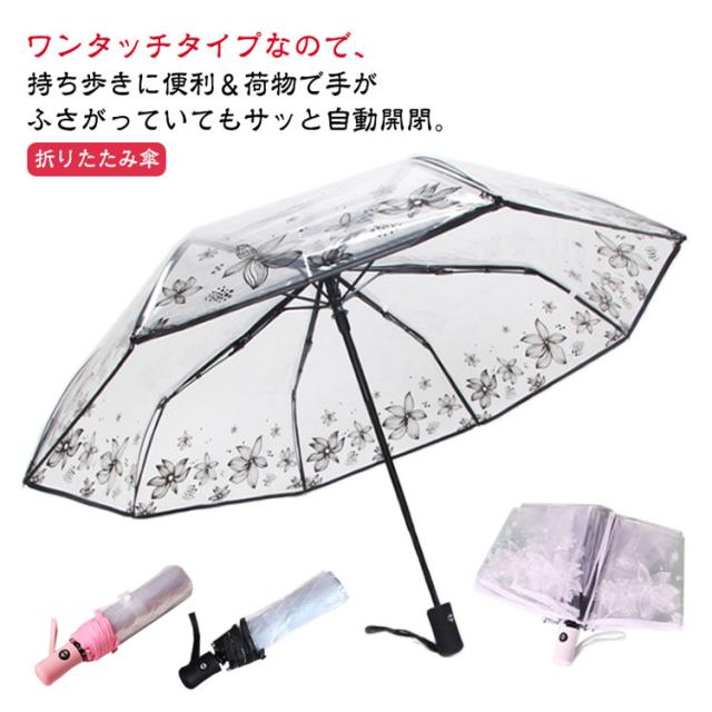 送料無料 雨傘 ビニール傘 折りたたみ ワンタッチ 自動開閉 透明 花柄 梅雨対策 雨の日 透明傘 傘 丈夫 かさ 折りたたみ傘 軽量 耐風 コンパクト 撥水 白 頑丈 丈夫 通勤 通学 かわいい シンプル 女性 20代30代40代50代 黒 おしゃれ