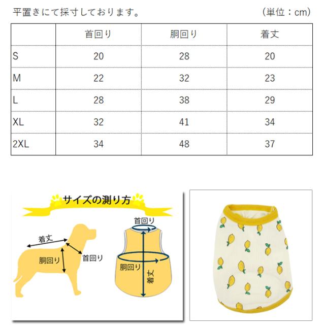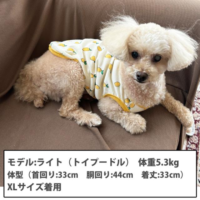 犬 服 犬服 いぬ 犬の服 着せやすい タンクトップ 袖なし ノースリーブ レモン柄 フルーツ柄