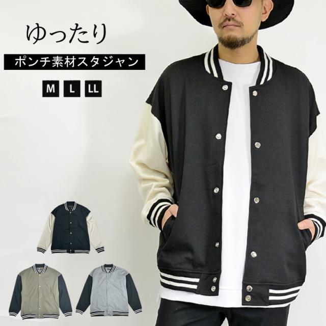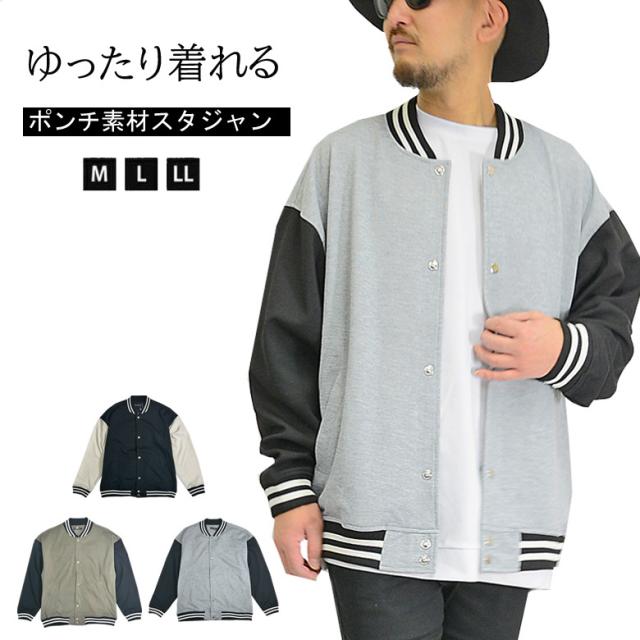 【閉店セール】メンズ ジャケットオーバーサイズ ポンチ スタジャン ズファッション 61562 きれいめ おしゃれ ベージュ ブラック グレー メンズ ジャケット スタジャン屋着 お洒落着 ビックシルエット ライトアウター M L LL メンズ スタジャン 大きいサイズ