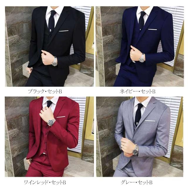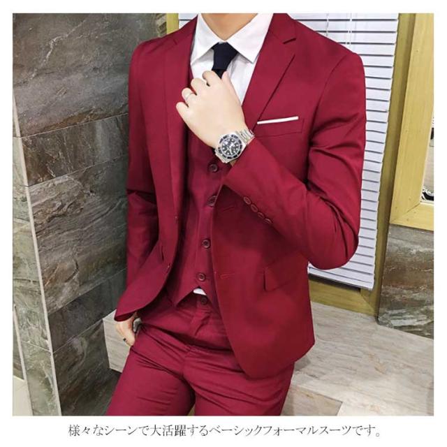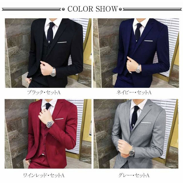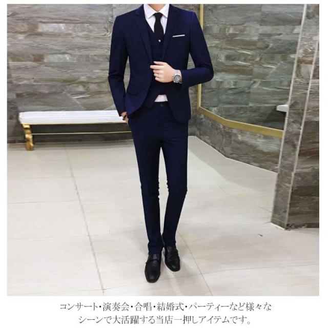 | 大ヒット!豪華なスーツ3点セットが登場しました。 ジャケット、パンツ、ベストやジャケット、パンツ、シャツの2組みから選べます。 就活、結婚式、演奏会、お呼ばれ、ビジネスシーンなどに◎ 様々なシーンで大活躍するフォーマルスーツです。 無地シンプルデザインで、冠婚葬祭どんなシーンにも活躍する主役級スーツです。 ディテールにこだわり、計算された綺麗なシルエットが男色を演出してくれます。 コンサート・演奏会・合唱・結婚式・パーティーなど様々なシーンで大活躍する当店一押しアイテムです。 | |