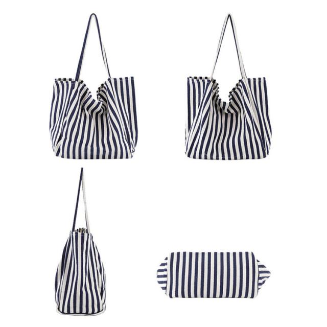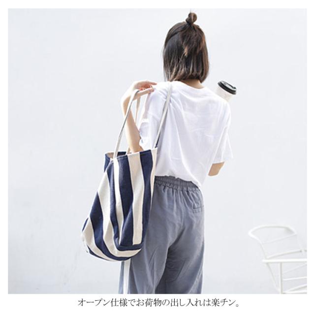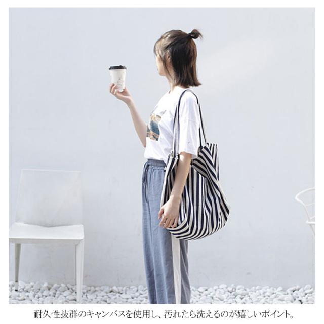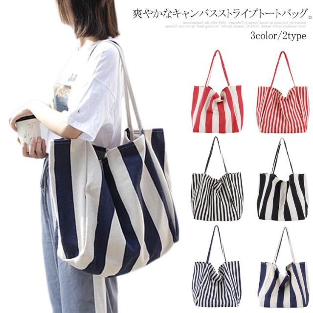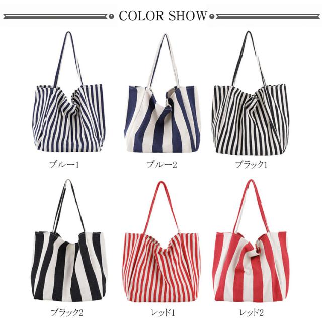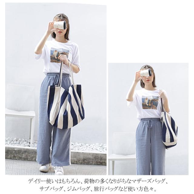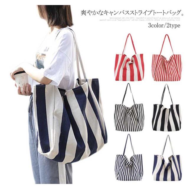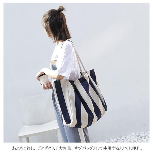ストライプ キャンバスバッグ ビッグトートバッグ 大容量 大きめ 旅行 お出かけ お買い物 エコバッグ ジムバッグ