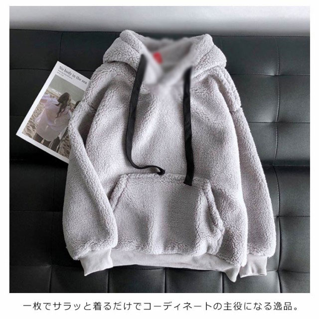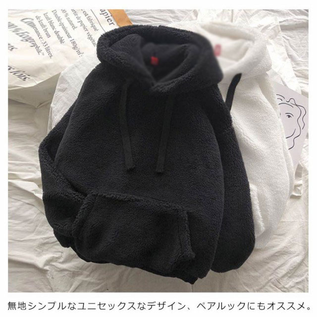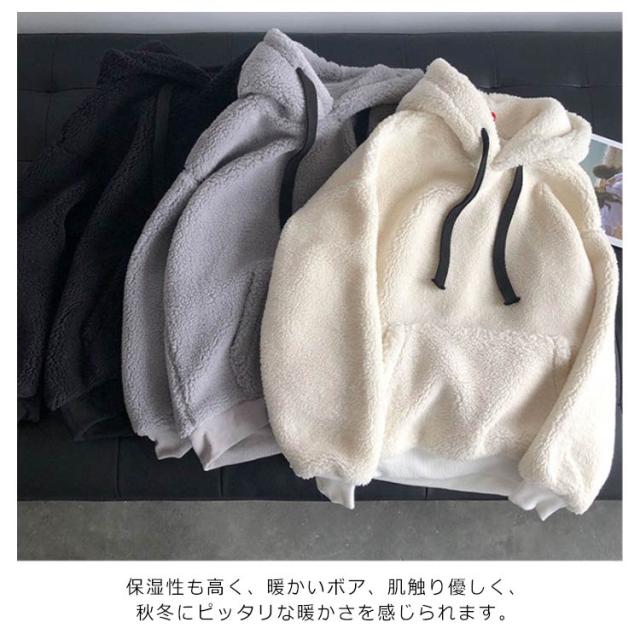 パーカー ボア パーカー プルオーバー フード付き メンズ レディース ユニセックス 無地 もこもこ パーカ ボアフリース 長袖 秋 冬 軽量 あったか ゆったり アメカジ系