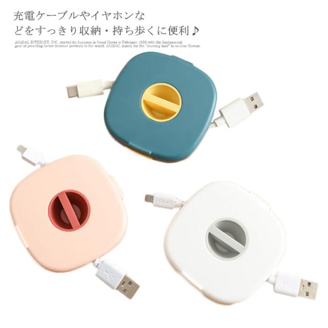 送料無料 ケーブルホルダー 収納ケース 巻き取り コードリール スマホホルダー 充電ケーブル イヤホン収納 整理 すっきり コンパクト 携帯便利 おしゃれ コードリール