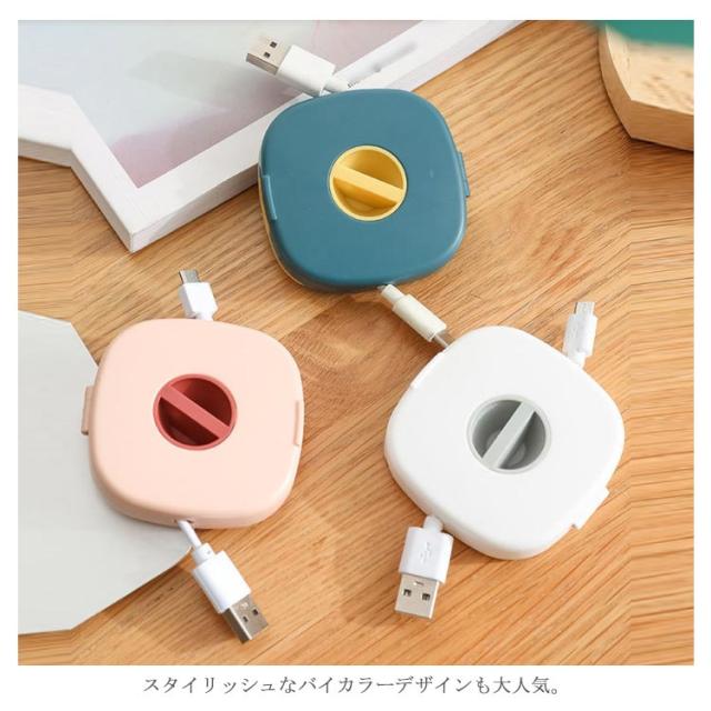 | 充電ケーブルやイヤホンなどをすっきり収納・持ち歩くに便利♪ 絡まりやすいケーブル/コードをスッキリ巻き取るコードリール。 必要な分だけ伸ばして使用し、デスク周りがすっきり。 ポケットに入れたり、バッグの中に入れるのにとても便利なコンパクトなサイズ感。 スタイリッシュなバイカラーデザインも大人気。 | |