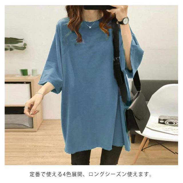 | 夏に最適なロングTの登場です。 落ち感のあるドロップショルダーシルエットが腕華奢みせ効果。 さらさらとした柔らかな綿素材で肌触りもよく、着心地抜群な一枚です。 ゆったりとしたシルエットとお尻まですっぽり隠れるやや長め丈で、ラクに体型カバー◎ 定番で使える4色展開、ロングシーズン使えます。 お手持ちのボトムスと合わせるだけでおしゃれスタイリング完成。 | |