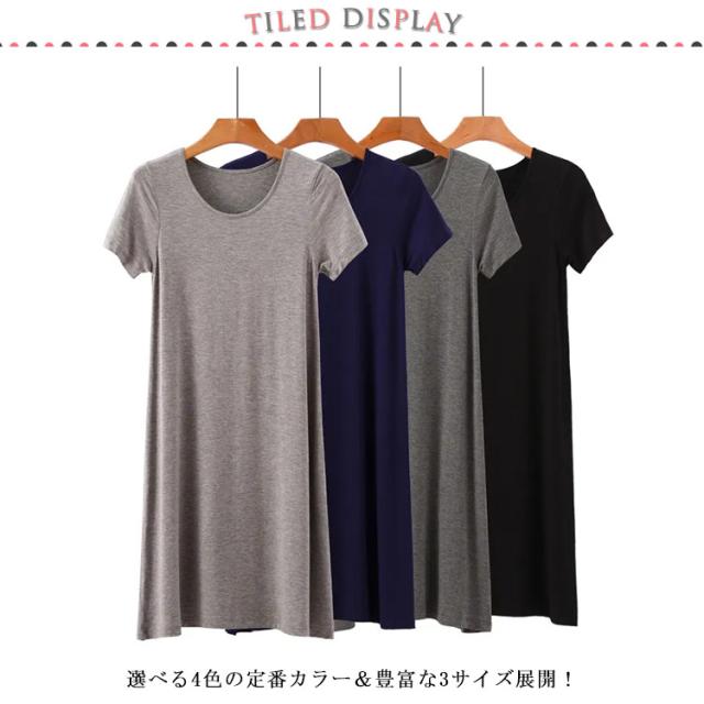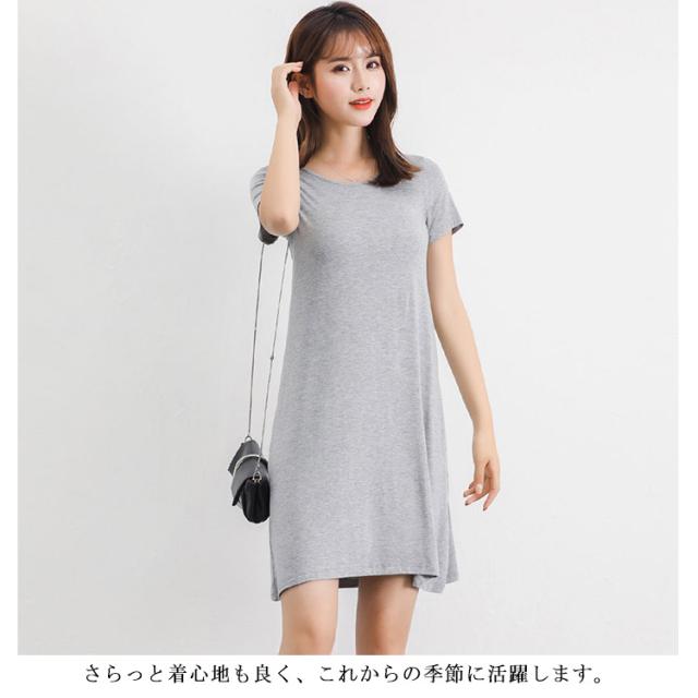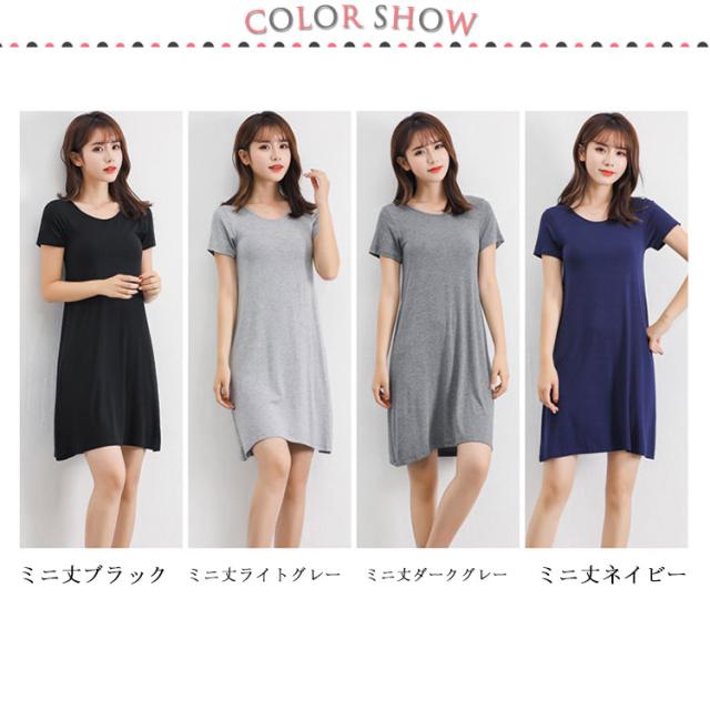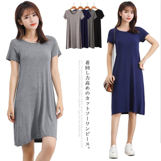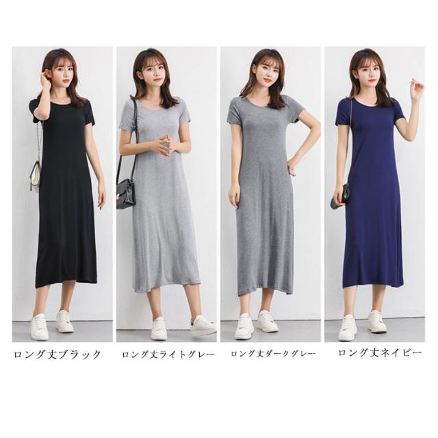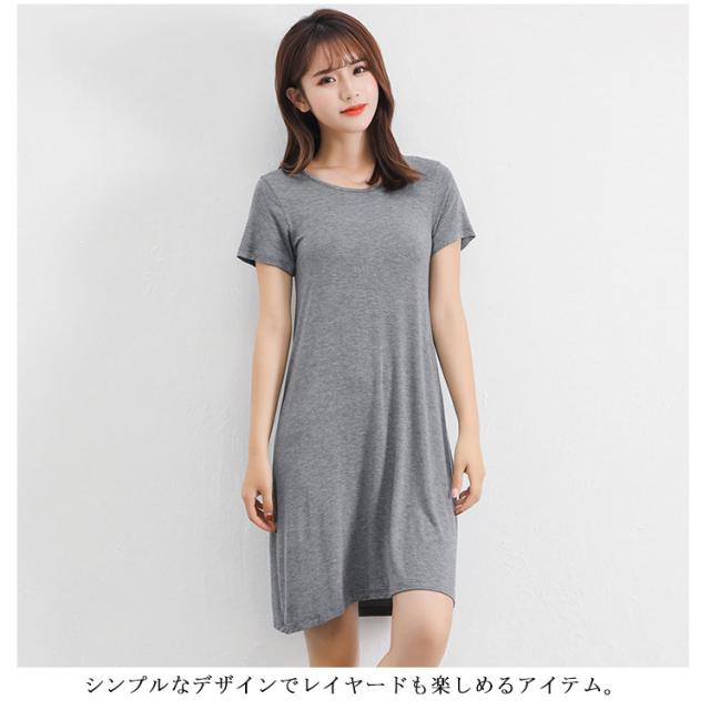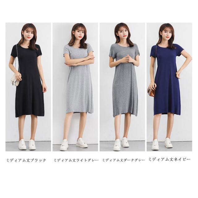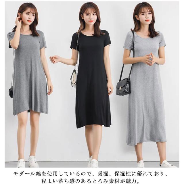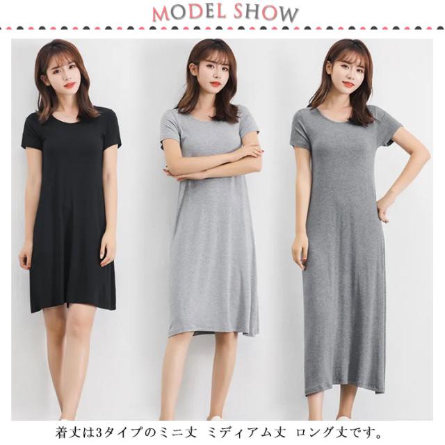 送料無料 Tシャツワンピ ロンT レディース 半袖 カットソー インナー ワンピース 肌着 春夏秋 ホワイト グレー ブラック ネイビー モダール ストレッチ ミニ丈 ミディアム丈 ロング丈