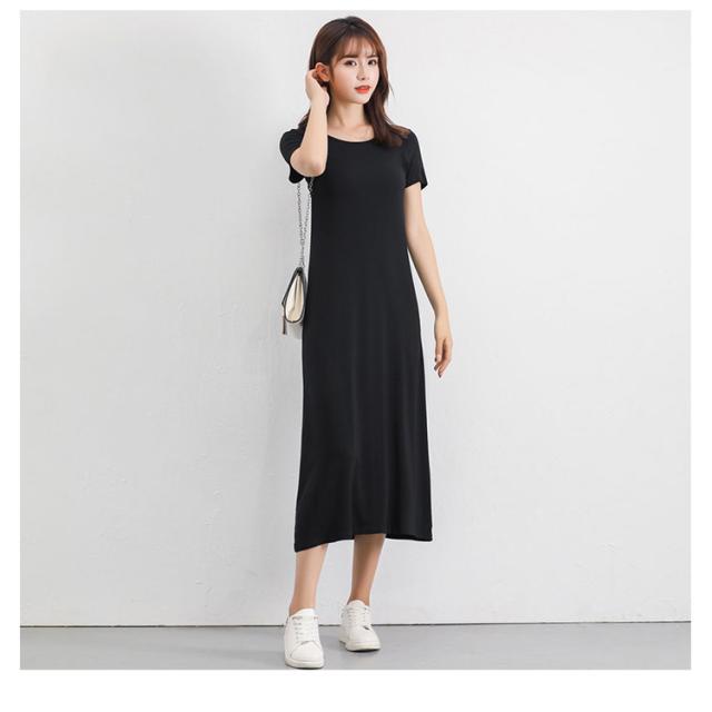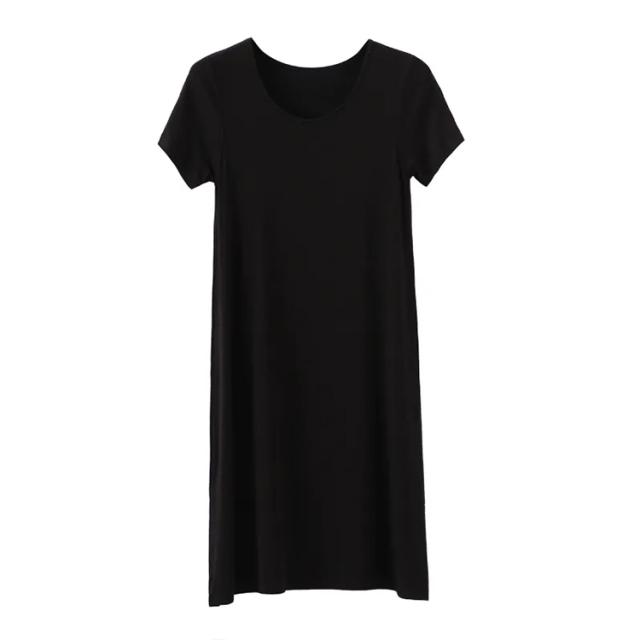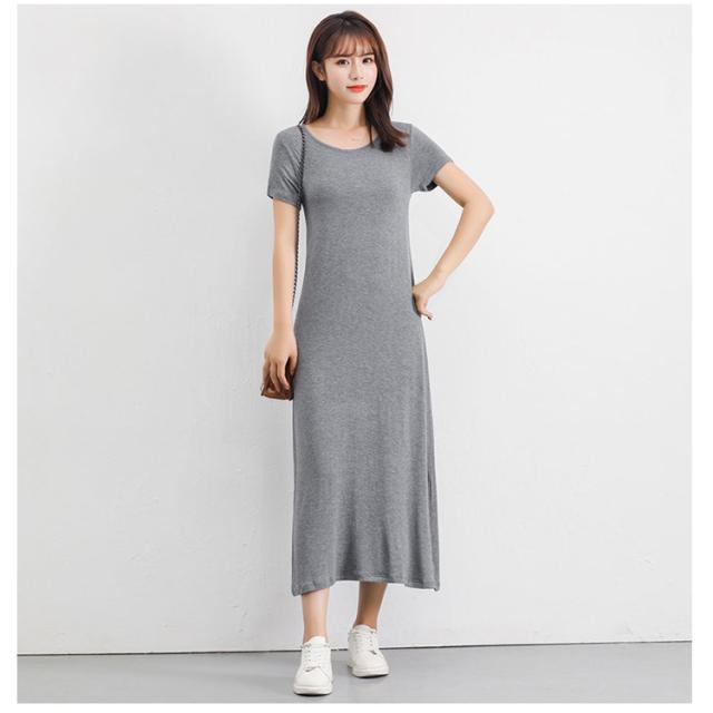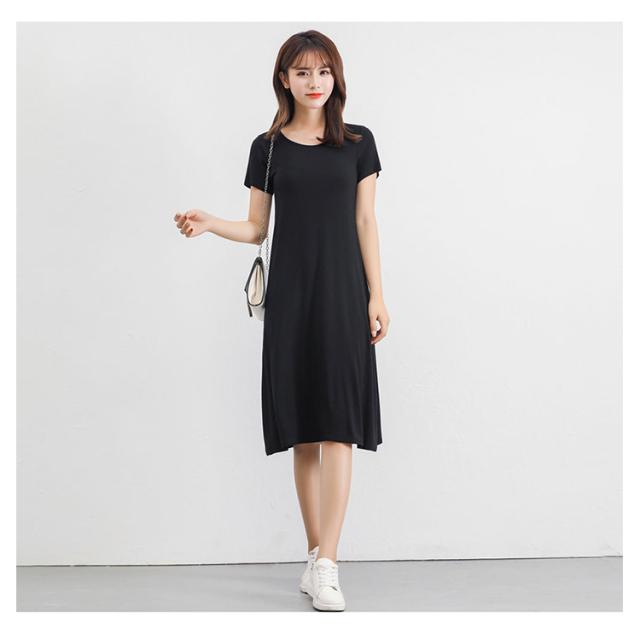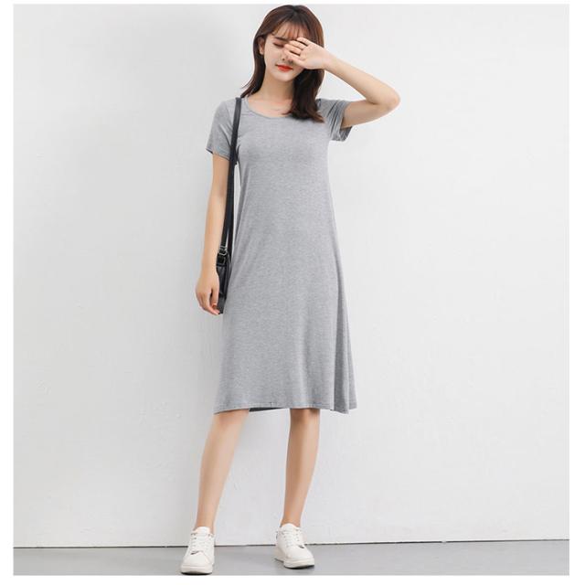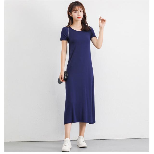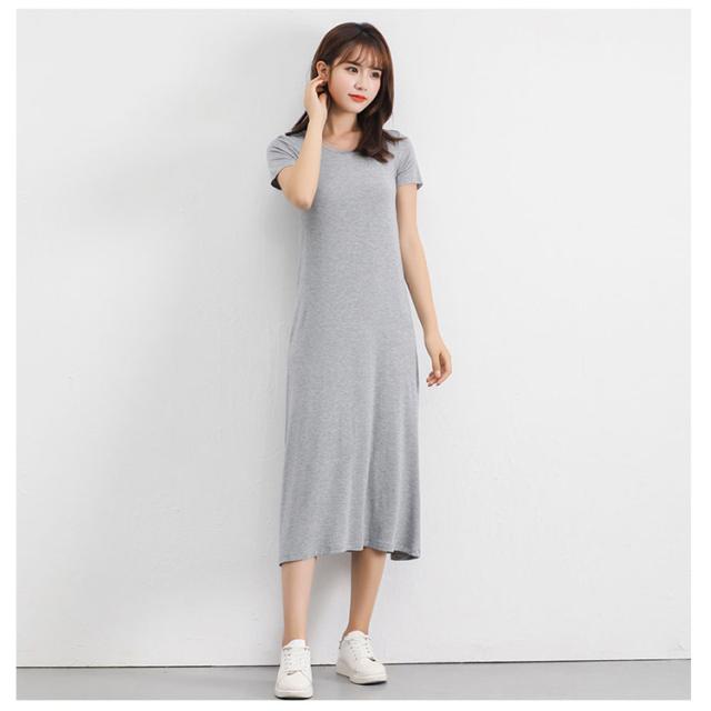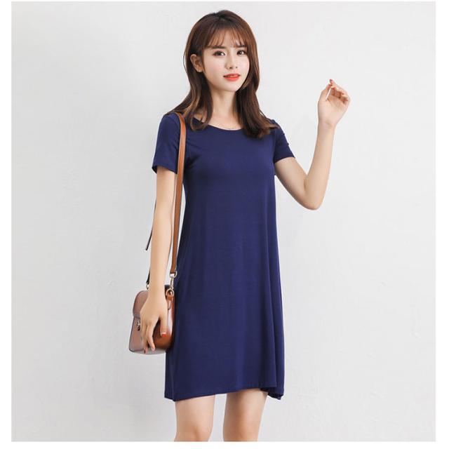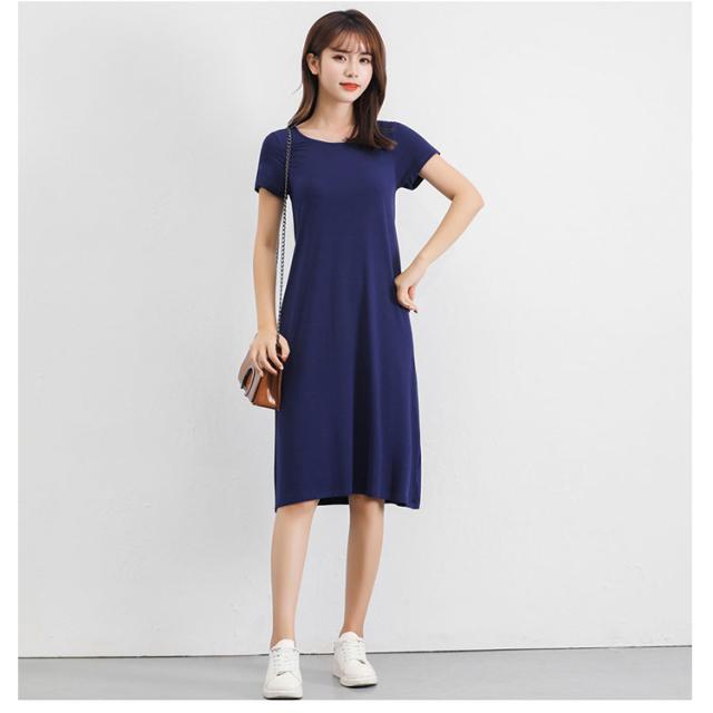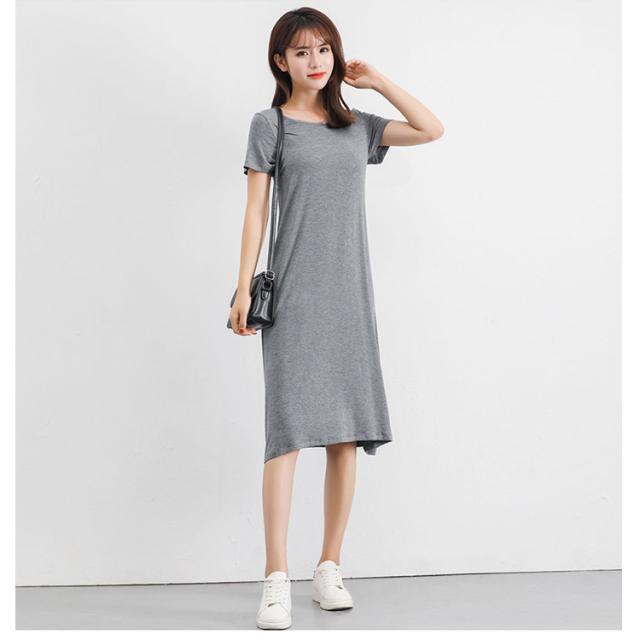 送料無料 Tシャツワンピ ロンT レディース 半袖 カットソー インナー ワンピース 肌着 春夏秋 ホワイト グレー ブラック ネイビー モダール ストレッチ ミニ丈 ミディアム丈 ロング丈