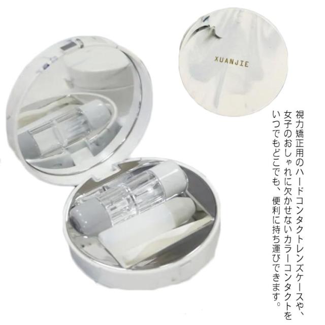 送料無料 ハードコンタクトレンズ用 コンタクトレンズケース コンタクトケース カラーコンタクト ハードレンズケース レンズケースカバー 大理石 ミラー付き 持ち運び 収納ケース 保存ケース 旅行 携帯 おしゃれ かわいい シンプル セット