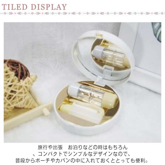 | 視力矯正用のハードコンタクトレンズケースや、女子のおしゃれに欠かせないカラーコンタクトをいつでもどこでも、便利に持ち運びできます。 旅行や出張 お泊りなどの時はもちろん、コンパクトでシンプルなデザインなので、普段からポーチやカバンの中に入れておくととっても便利。 内側は全面ミラーになっているので、外出先でコンタクトを脱着する際や、ちょっとしたメイク直しなどもにお役立ちのケースです 先端がシリコンのように柔らかい素材のピンセット付き。小さいボトルもセットになっているので、保存液を詰め替えて携帯できます。 ネイルが長くてもコンタクトを傷つけてしまう心配がなく、手が洗えない時などにも安心してコンタクトを取り扱いえます。 ふたを開けると、内部に鏡がついているので、目元のチェックにとっても便利。 マグネットが内蔵されているので、閉じた時にピタッとくっつきます。 手のひら収まるサイズで、とってもコンパクト。旅行など外出先での携帯用にもぴったりです。 大切なコンタクトレンズを可愛く収納&携帯してください。 | |