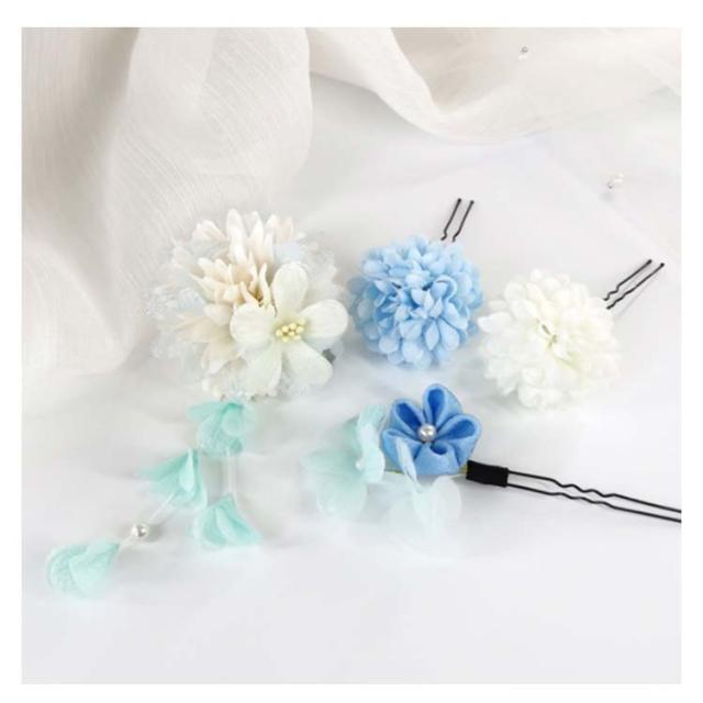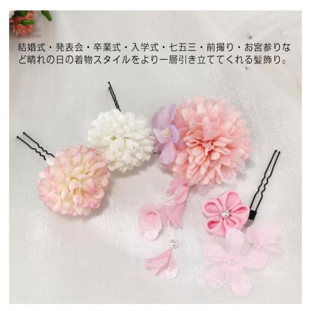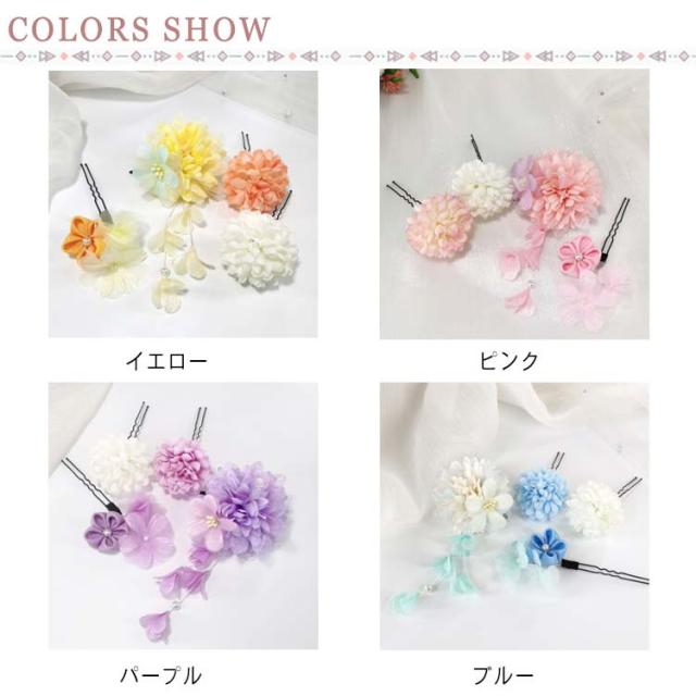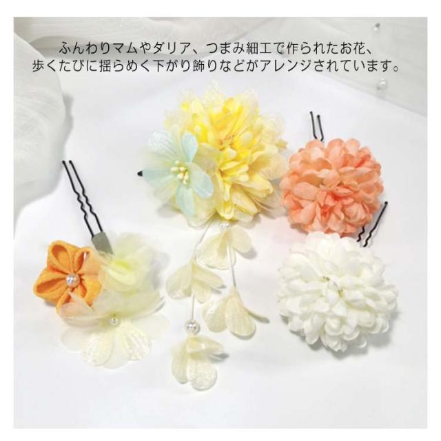 着物 髪飾り 4点セット 成人式 結婚式 卒業式 和装 振袖 袴 ちりめん つまみ細工 花飾り 花 ポンポンマム 菊 ダリア 下がり飾り 浴衣 七五三 造花 ヘッドドレス 和風 ヘアアクセサリー