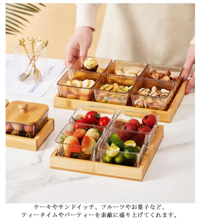 | ケーキやサンドイッチ、フルーツやお菓子など、ティータイムやパーティーを素敵に盛り上げてくれます。 13点セット(小鉢*6+蓋*6+トレー*1)で、華やかさを演出します。 ちょっとしたホームパーティーやバースディパーティーなどに、楽しい時間を演出してくれます。 | |