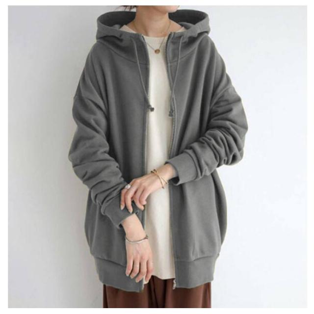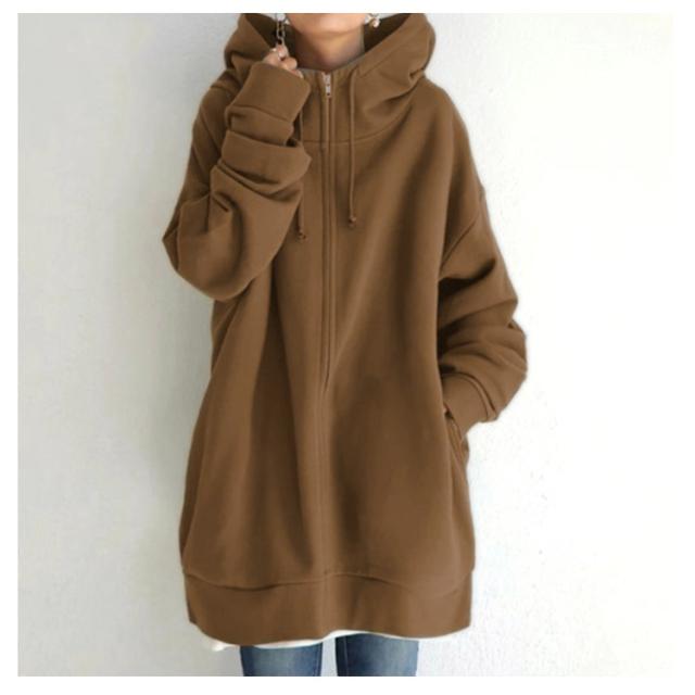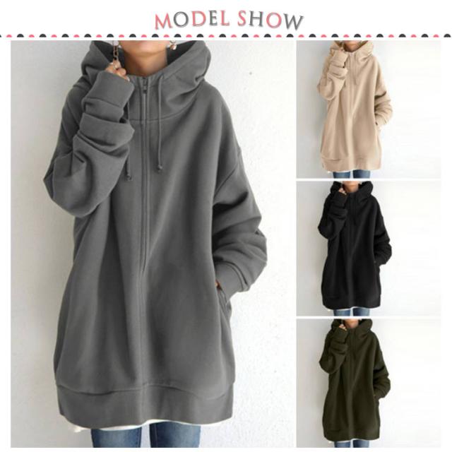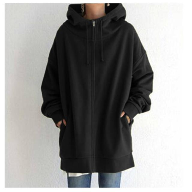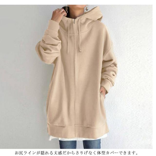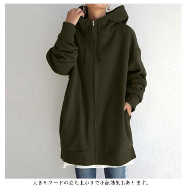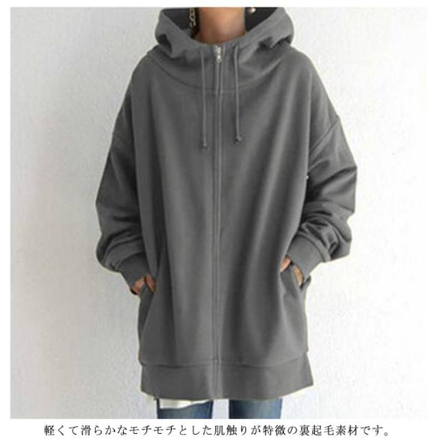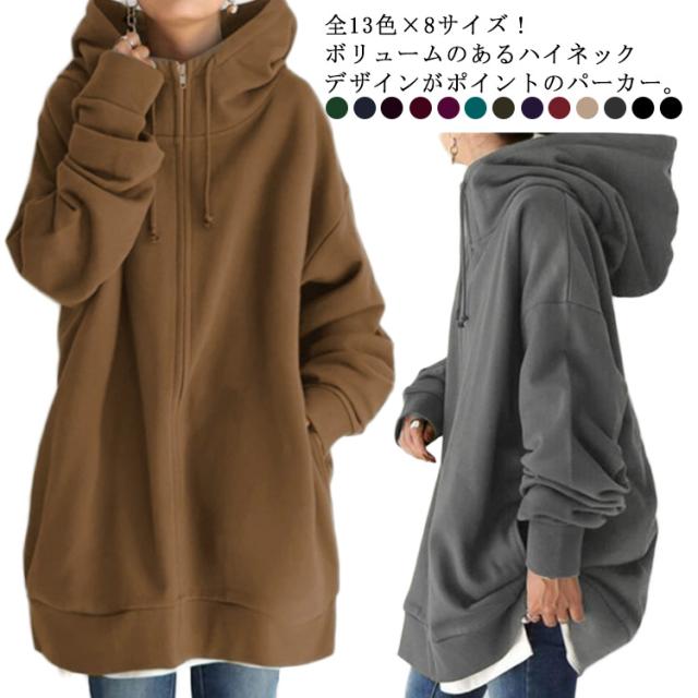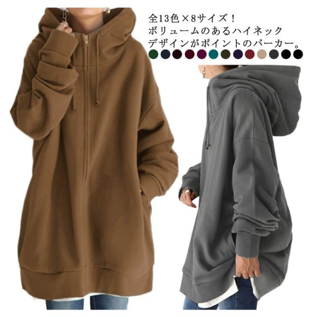 S−5XLサイズ!ボリュームネック パーカー レディース ロングパーカー スウェット ロング丈 パーカ ハイネック フード付き ジップアップパーカー 無地 トップス 裏起毛 体型カバー 大きめ あったか おしゃれ ゆったり 大きいサイズ