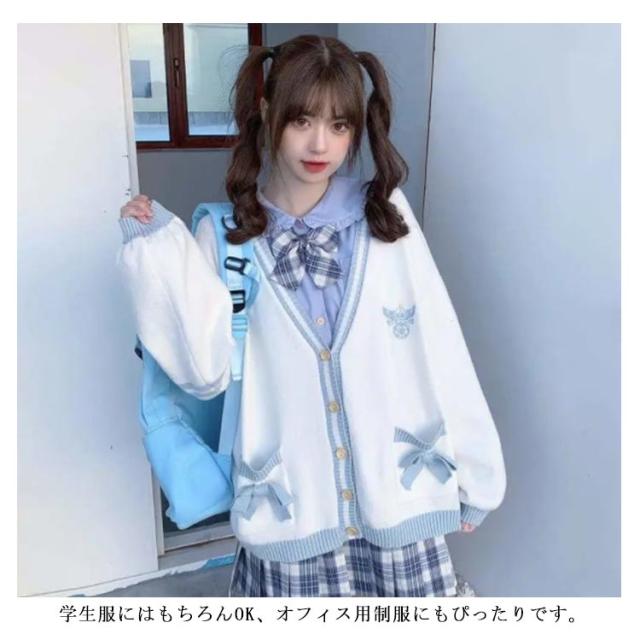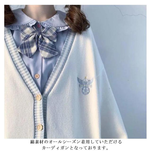 送料無料 スクールカーディガン レディース カーディガン Vネック 刺繍 セーラー服 制服 学生服 ニットセーター 前開き 秋 冬 ニットカーディガン 森ガール セーターコーディガン
