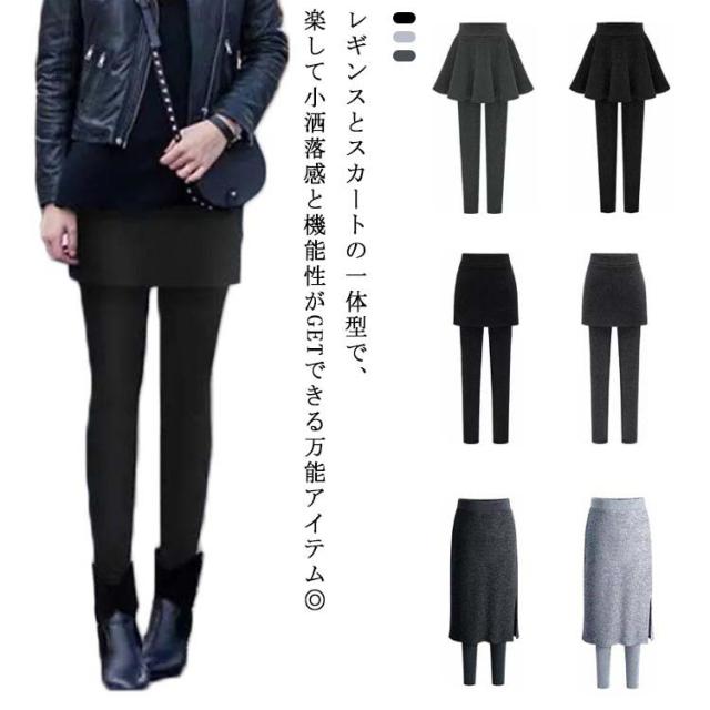 スカート付き レギンス サイドスリット ボトムス スカートレギンス スパッツ スカッツ タイトスカート レギパン 重ね着風 ウエストゴム レディース 学生 春秋 大人可愛い 大きいサイズ 無地 3タイプ