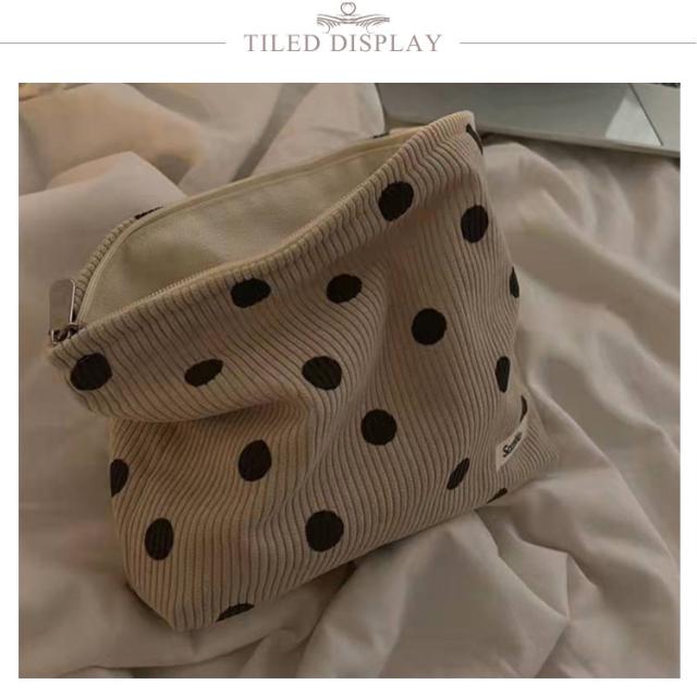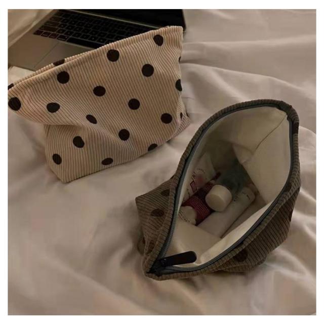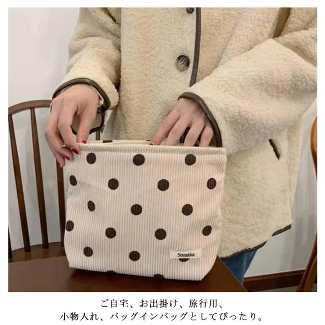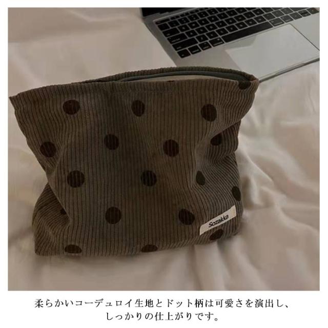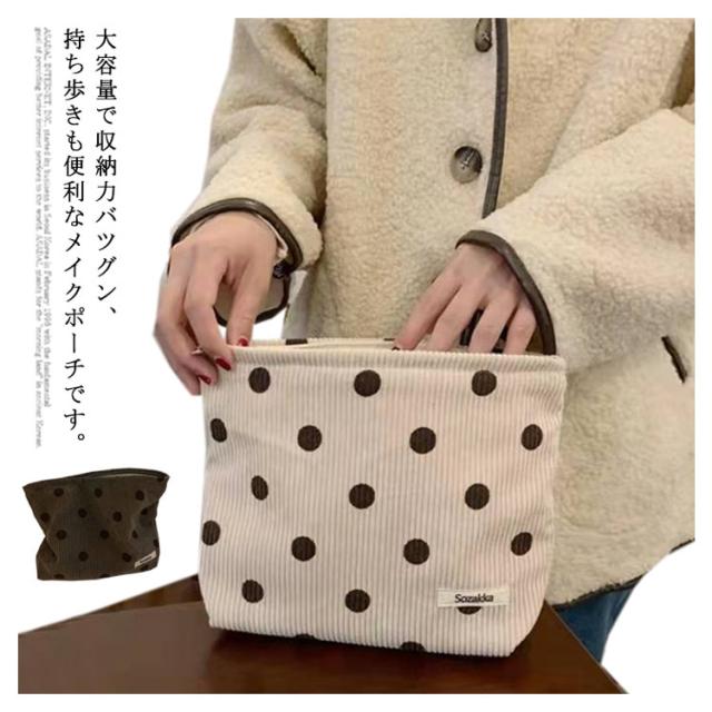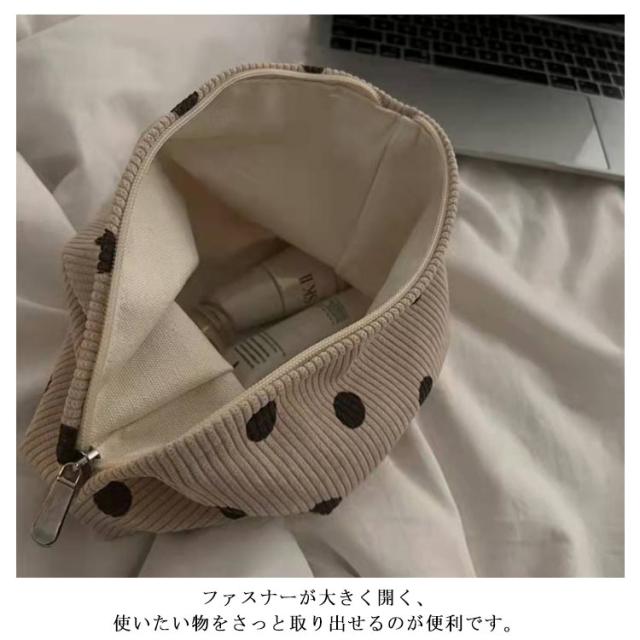 メイクポーチ 大きめ 大容量 化粧ポーチ 水玉 ドット柄 コーデュロイ 折りたたみ 小物入れ 収納 多機能 かわいい コスメ 化粧品 マルチポーチ 整理 シンプル おしゃれ 旅行 トラベルポーチ バッグインバッグ 送料無料