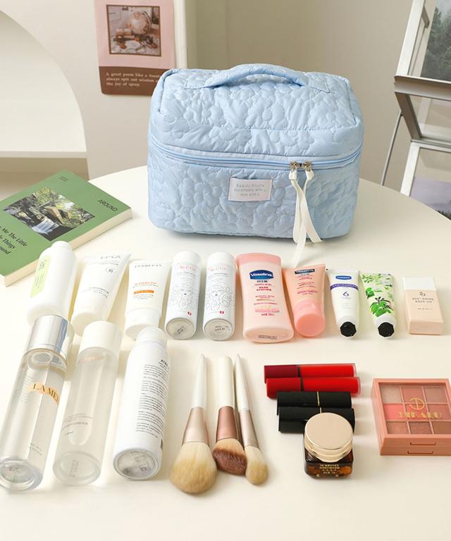 【ふっくら軽い♪/大容量/フラワーキルティングが大人かわいいデザイン/メイクポーチ/トラベルポーチ】