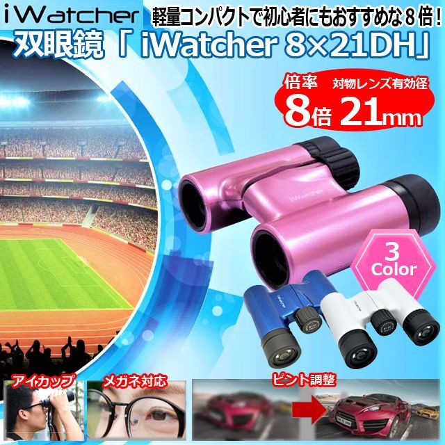 双眼鏡「 iWatcher 8×21DH」 (8倍 メガネ対応 ピント調整 軽量 コンパクト コンサートグッズ スポーツ観戦グッズ)