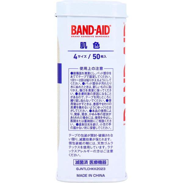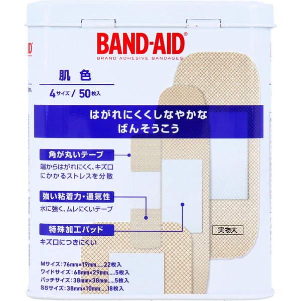 絆創膏 バンドエイド 肌色 4サイズ 50枚入 缶入 水に強くはがれにくいばんそうこう