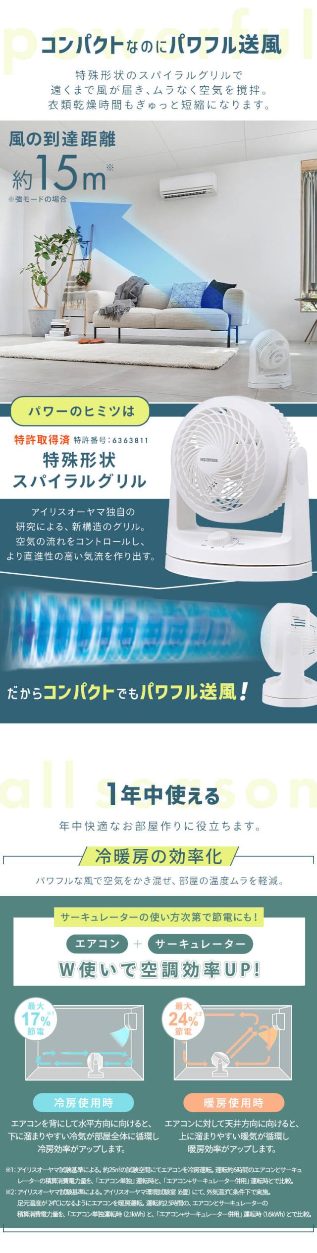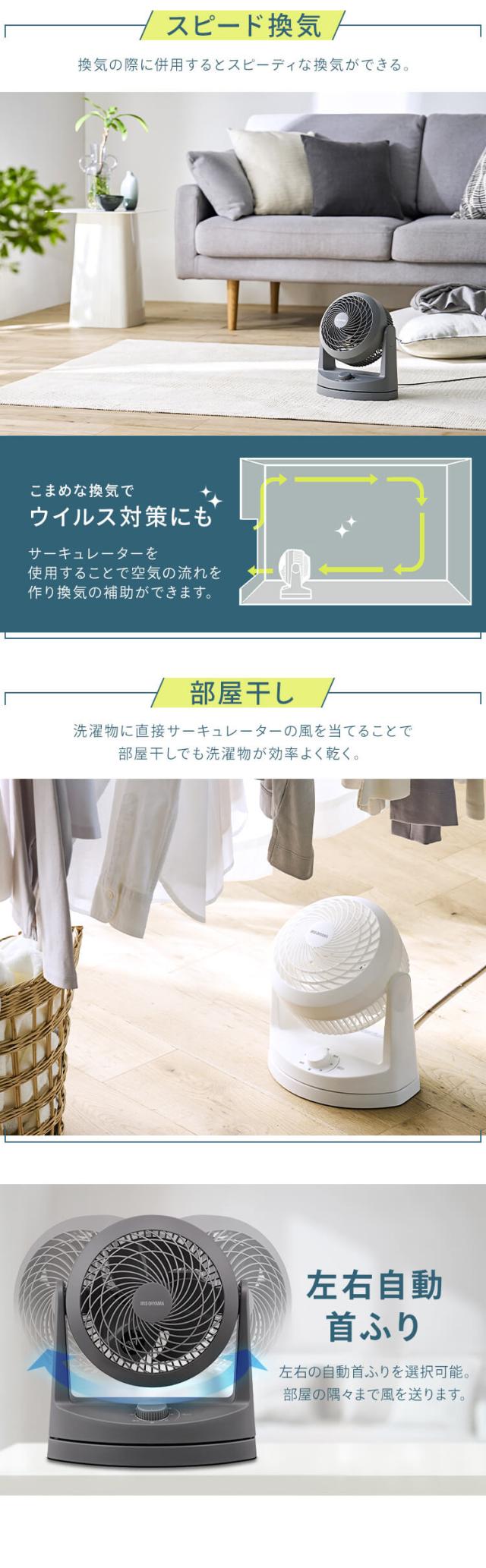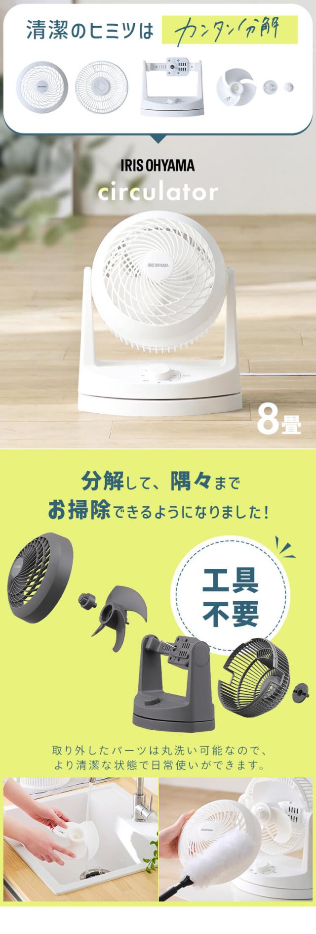 サーキュレーター アイリスオーヤマ 洗える 上下 左右 首振り 分解 扇風機 パワフル送風 8畳 風量3段階 角度6段階 軽量 コンパクト 簡単お手入れ 空気循環 卓上 デスク キッチン 換気 衣類乾燥 部屋干し 室内干し 梅雨対策 WOOZOO PCF-HD15EC *