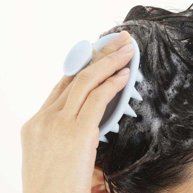 髪や頭皮にやさしい、シリコン製のシャンプーブラシです。頭皮を優しくマッサージしながら、毛穴の汚れもしっかり洗浄。程よい弾力で、さっぱりと洗うことができます。